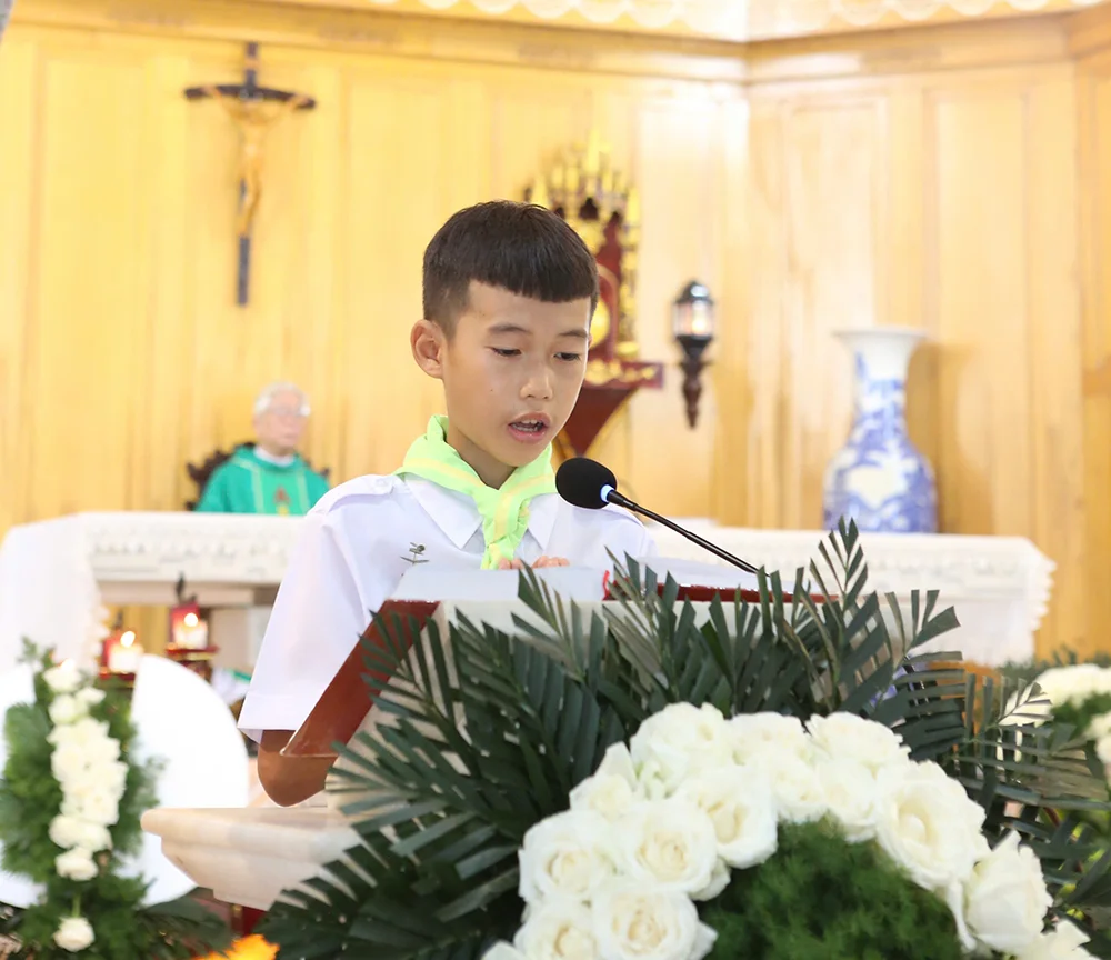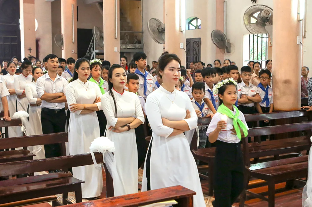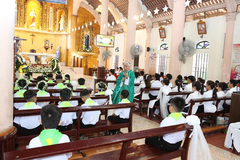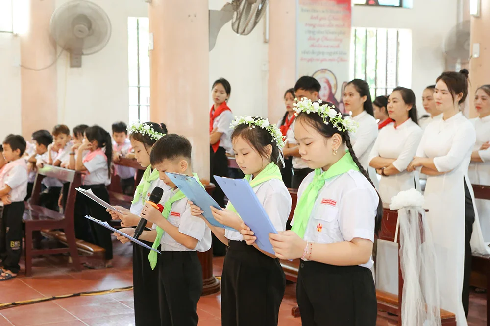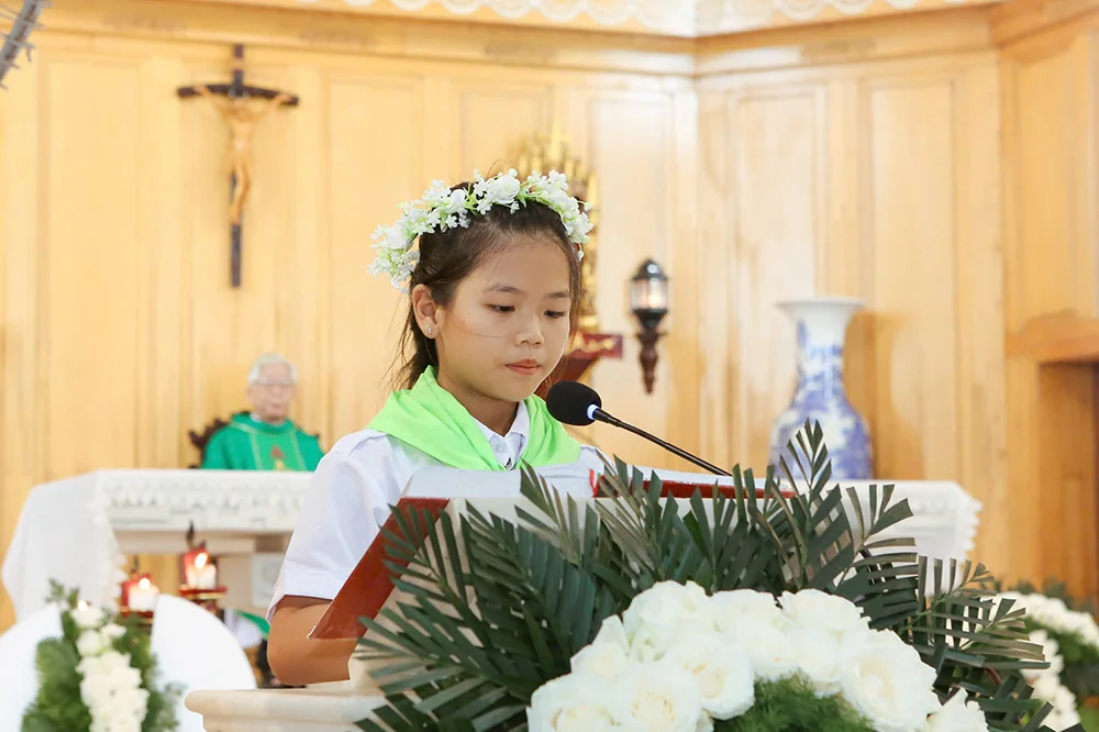 Thánh lễ do cha xứ Gioan Baotixita Nguyễn Như Định chủ sự, cùng với sự hiệp thông của quý sơ dòng Mến Thánh Giá, quý phụ huynh, anh chị giáo lý viên và toàn thể cộng đoàn dân Chúa trong giáo xứ.