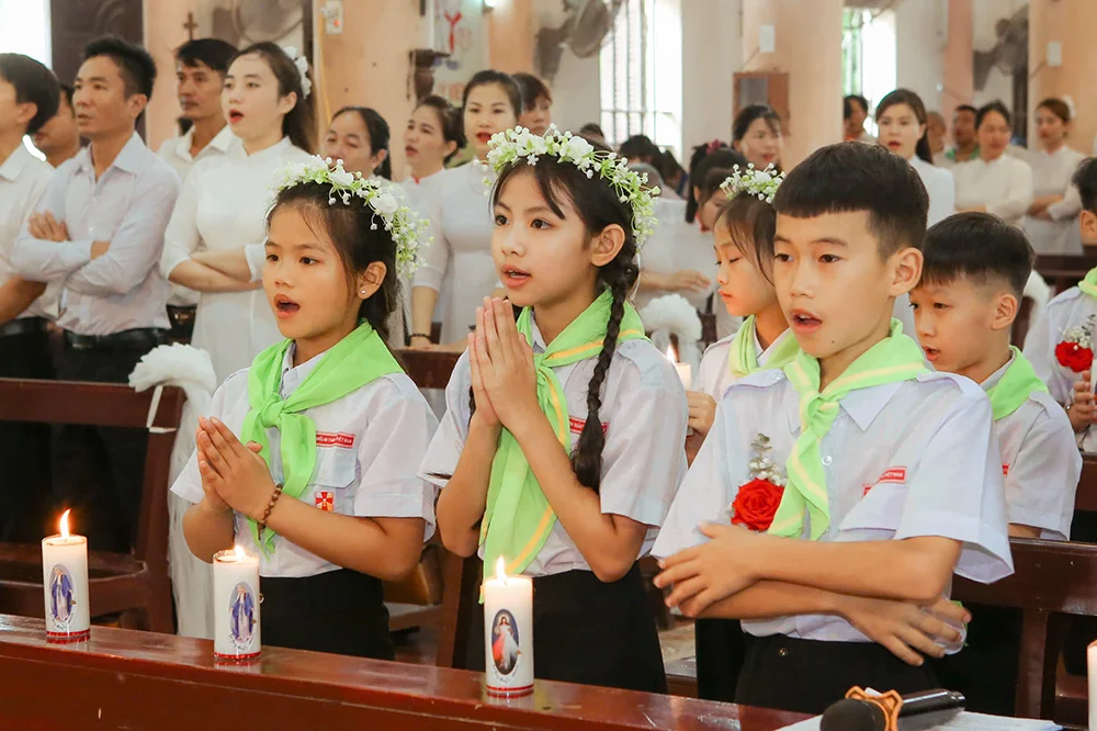 31 em thiếu nhi rước Chúa lần đầu tại giáo xứ Mỹ Lộc