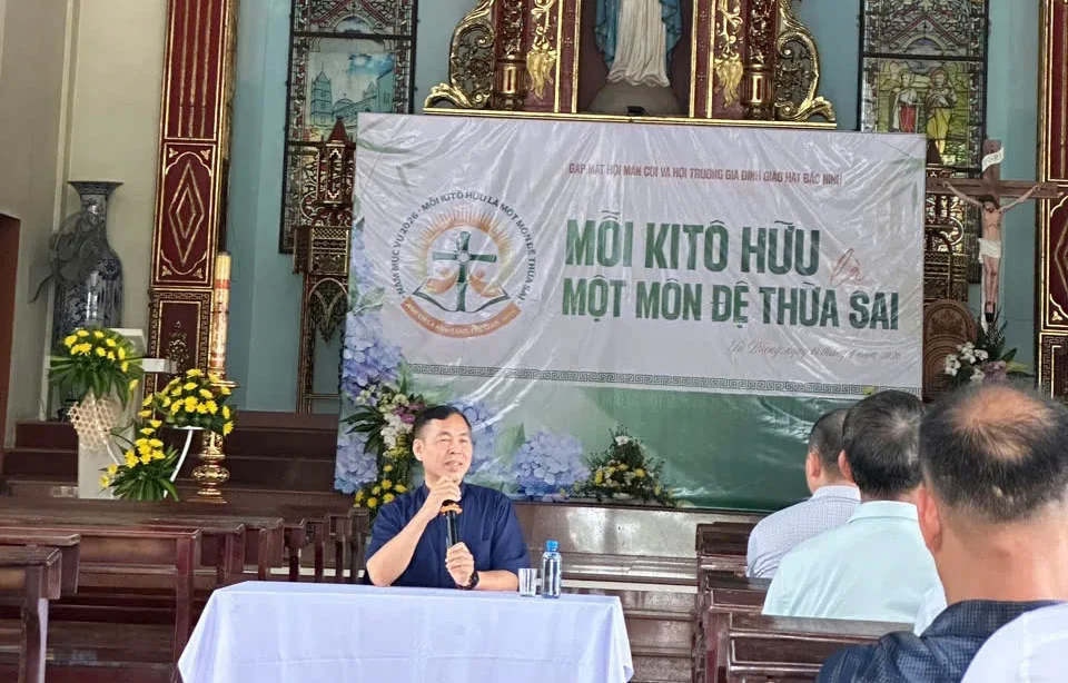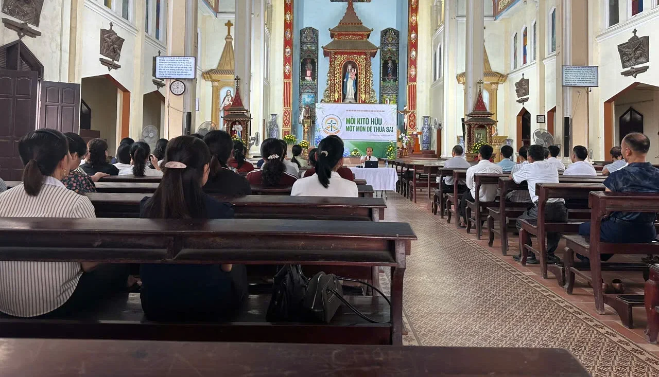 Hôm nay, ngày 19 tháng 4 năm 2026, Chúa Nhật III Mùa Phục Sinh, Ban Loan Báo Tin Mừng, phối hợp cùng quý cha đặc trách hai đoàn hội Trưởng Gia Đình và Mân Côi Giáo hạt Bắc Ninh, đã quy tụ gần 100 thành viên về Trung tâm Thánh Mẫu Từ Phong để cùng nhau hiệp hành, gặp gỡ và học hỏi Tông huấn Loan Báo Tin Mừng của Đức Giáo Hoàng Phaolô VI.