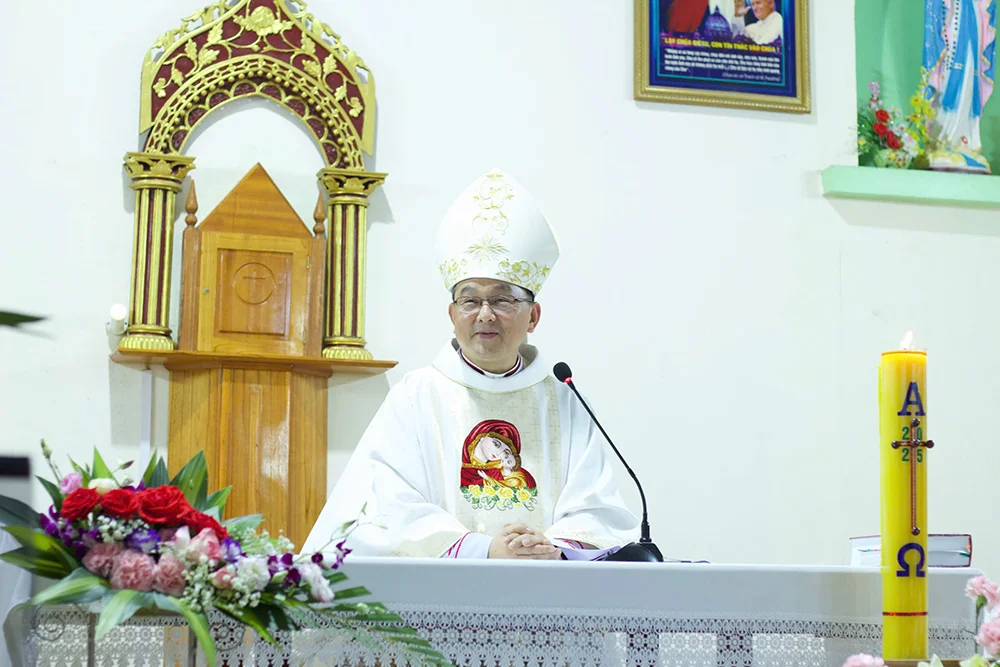 Trong Thánh lễ tại giáo họ Cón-lẹng, Ngài chia sẻ về tinh thần yêu mến làm nên cốt lõi đời sống người tín hữu. Yêu mến Chúa thực sự, người tín hữu cần để cho mình được giáo dục đức tin, gia tăng cộng tác xây dựng cộng đoàn đức tin. Vị cha chung vì thế cũng đồng cảm với các cộng đoàn mong mỏi xây dựng nhà thờ, nhưng cần lưu ý giáo dục đức tin và xây dựng toà nhà đức tin sống động nhờ gắn kết mọi người trong sự hiệp thông sống đạo.