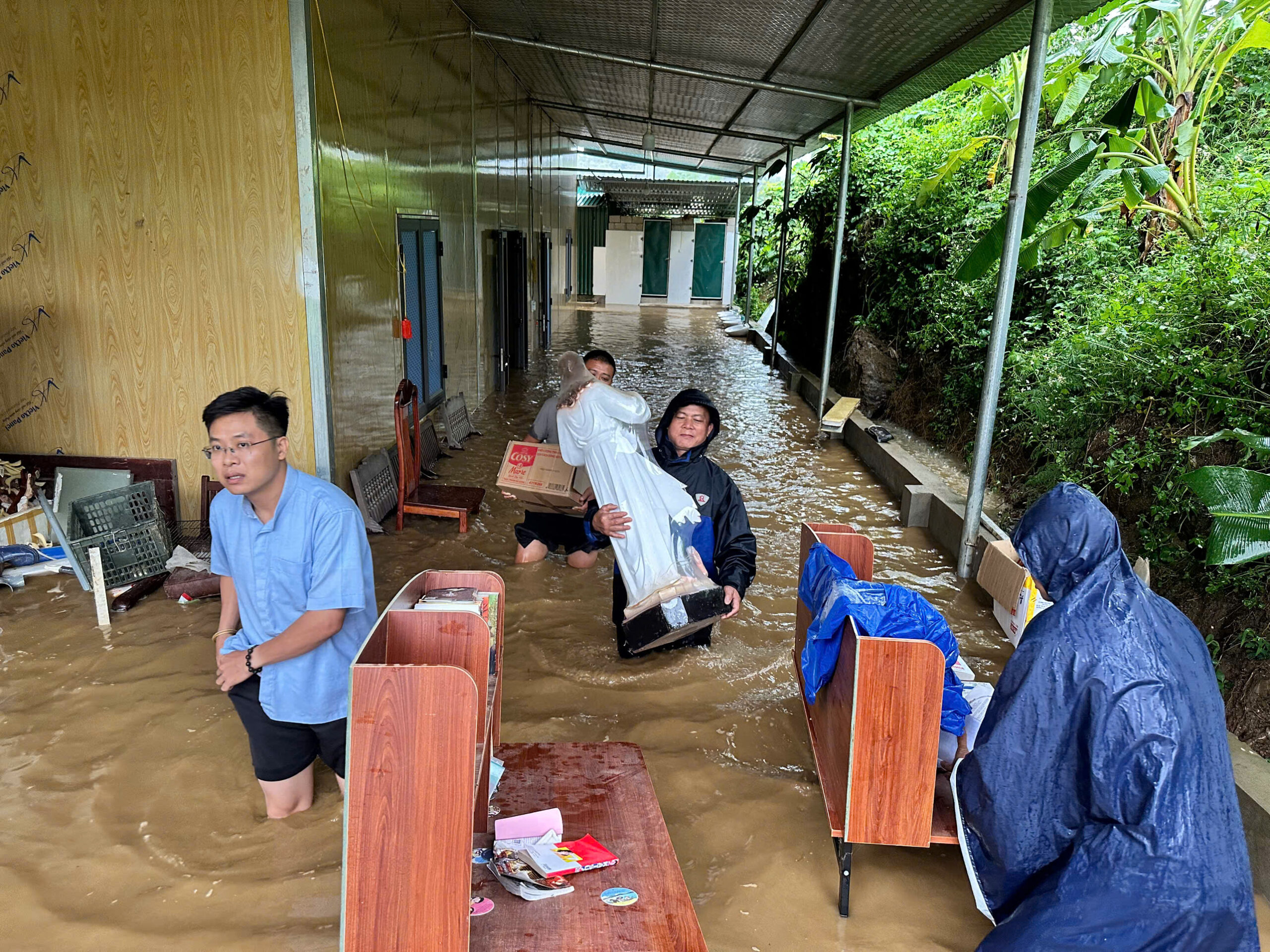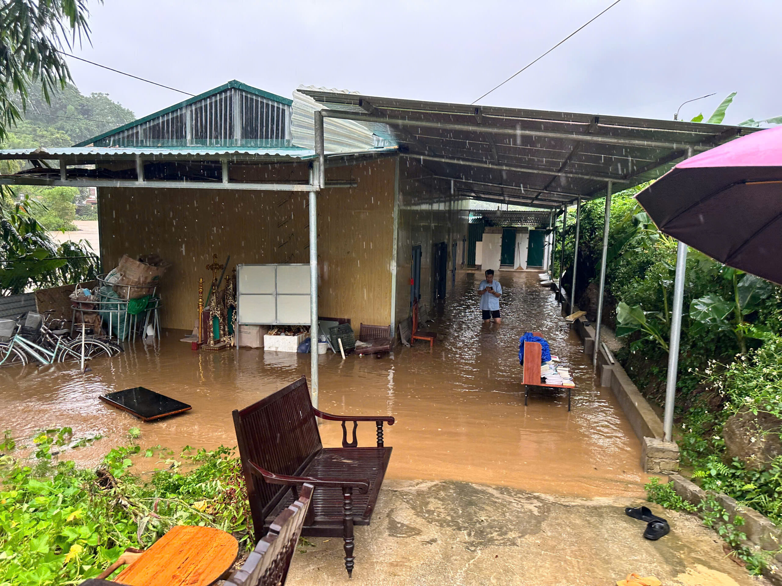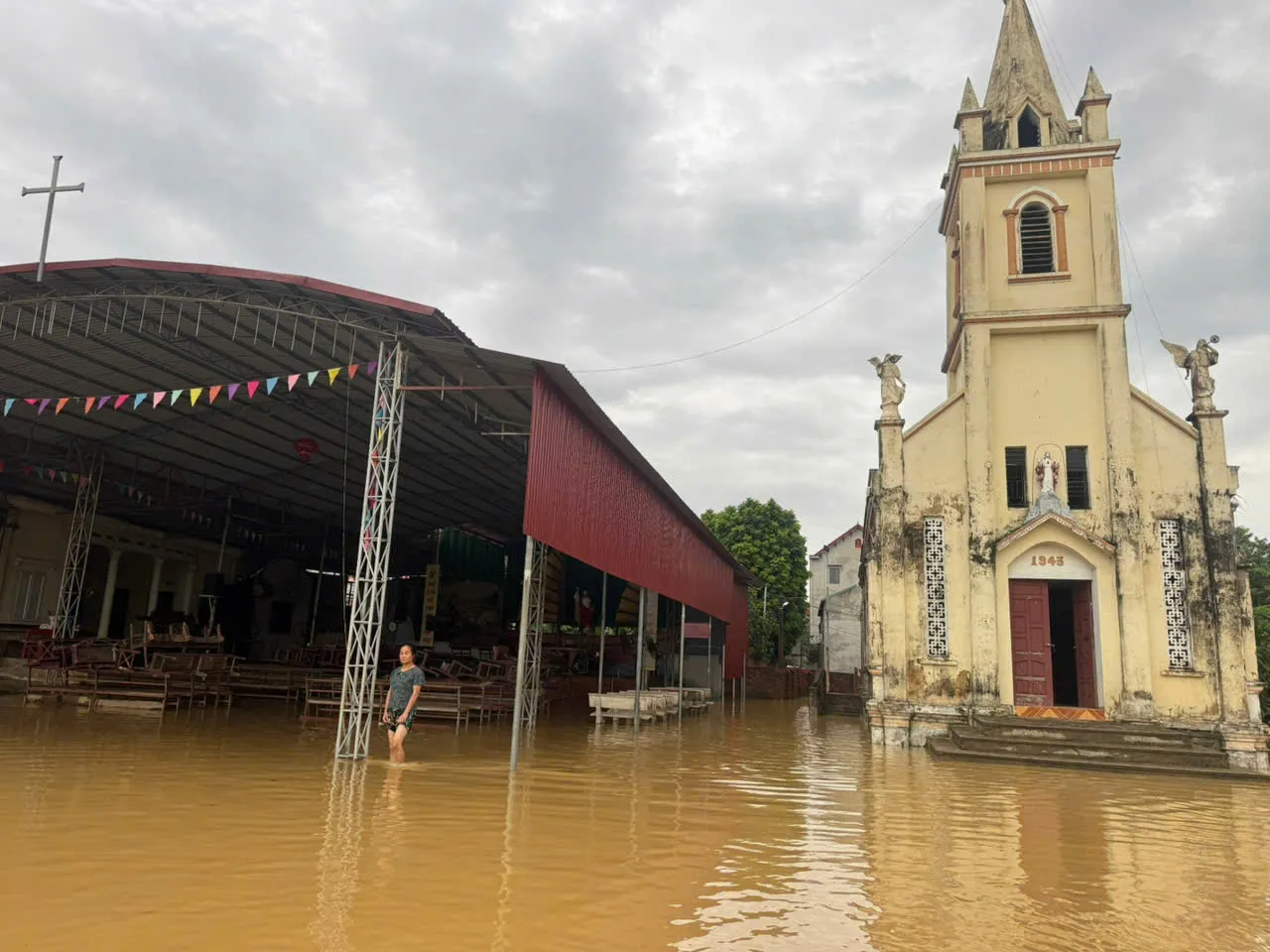 Còn tại giáo hạt Bắc Giang, giáo xứ Tiên Lục và Hoà An, tình trạng nước lũ đã dâng lên ngập đầu gối.
