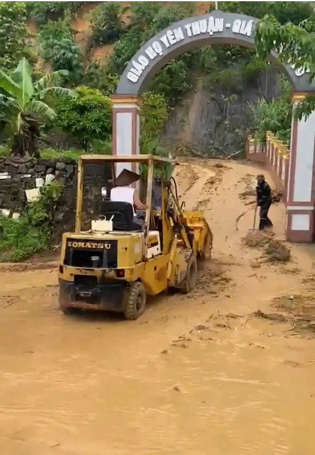Vào giờ trưa, tại giáo họ Yên Thuận, xứ Đại Từ, tình trạng sạt lở bắt đầu đến tại cổng Nhà thờ và nhiều gia đình chịu ảnh hưởng.
