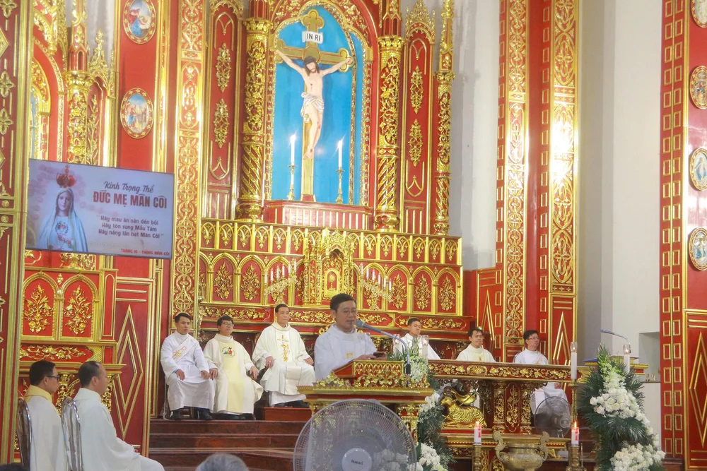 Trong bài giảng lễ, cha Giuse Nguyễn Hoàng Ân chia sẻ về mầu nhiệm Kinh Mân Côi, mời gọi cộng đoàn siêng năng lần hạt, sống tinh thần cầu nguyện và đặc biệt noi gương Thánh Faustina – người đã sống trọn vẹn lòng tín thác vào Chúa Giêsu.