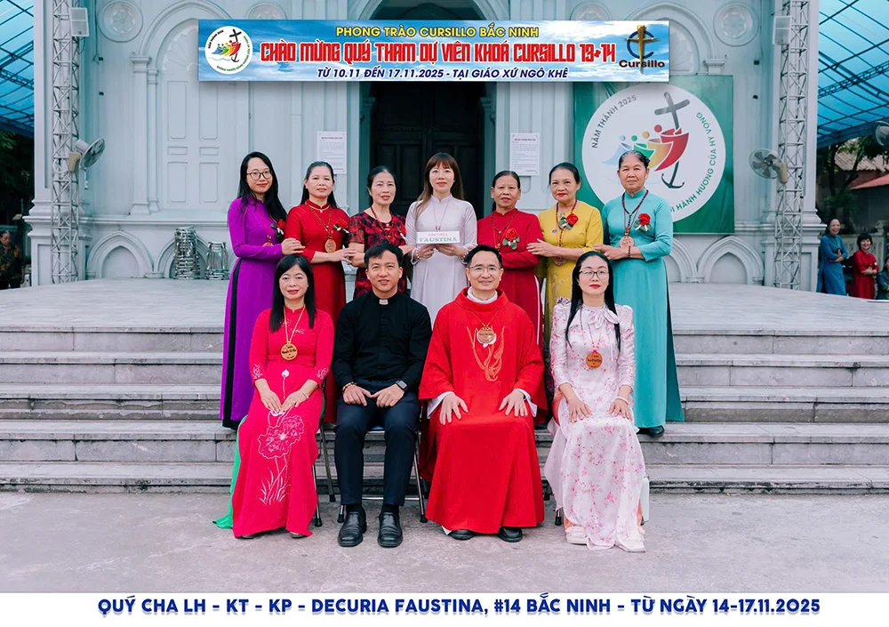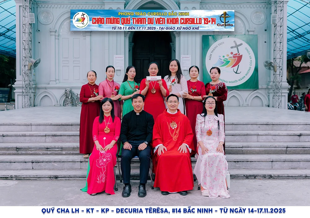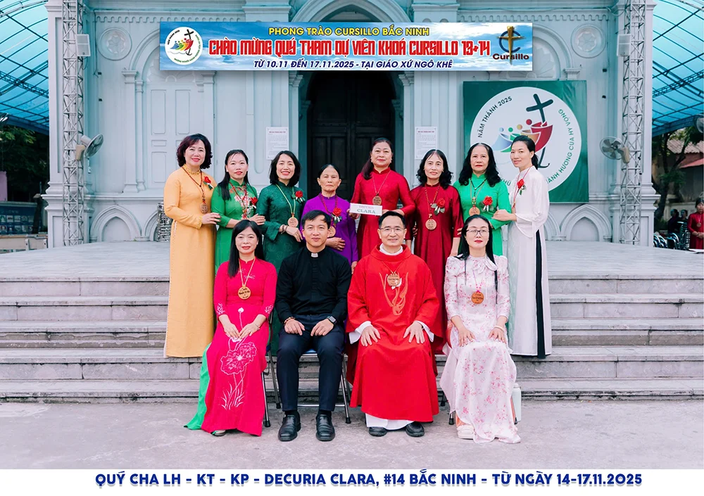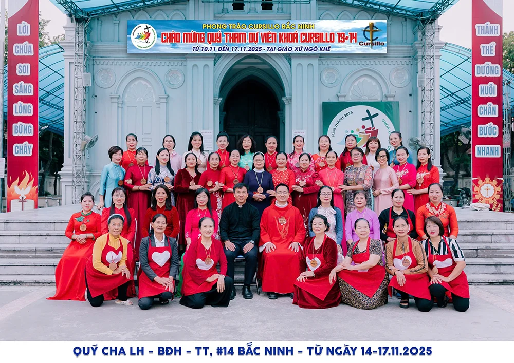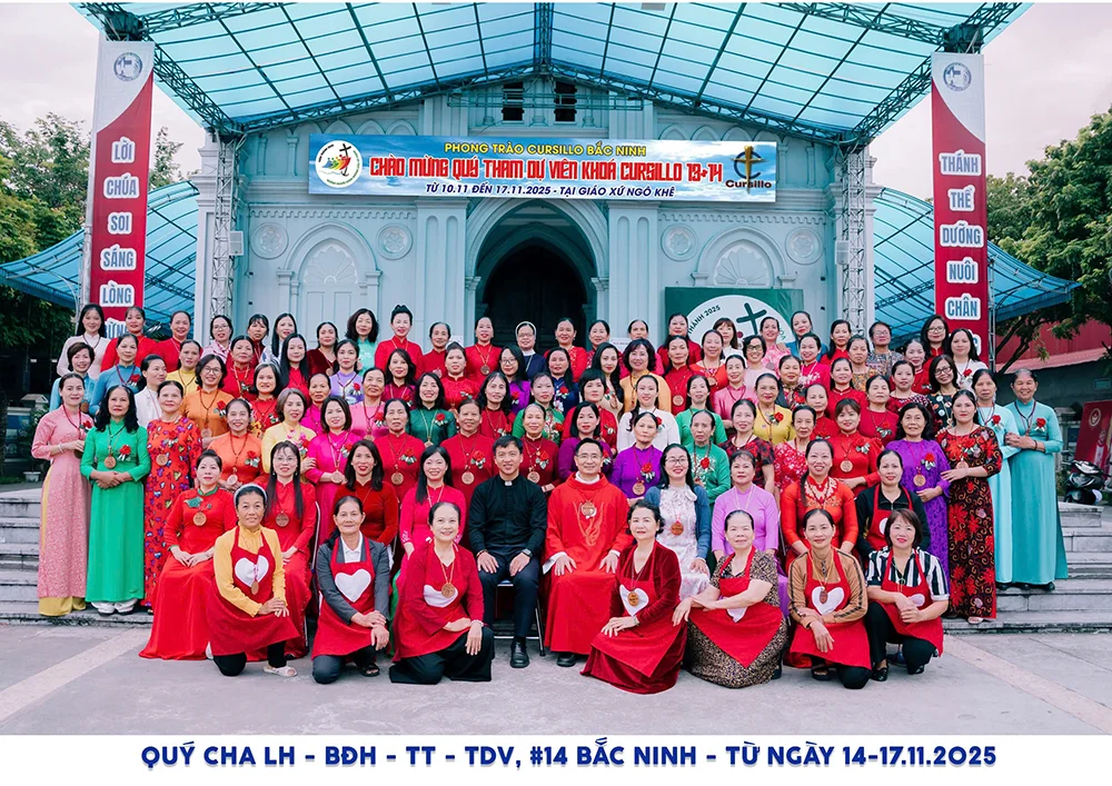 Trong bầu khí ân sủng của Năm Thánh 2025, Khóa Tĩnh Huấn Cursillo Khóa 14 – Nữ đã kết thúc vào chiều ngày 17.11.2025 tại giáo xứ Ngô Khê, để lại nhiều dấu ấn thiêng liêng trong tâm hồn tham dự viên. Khóa học quy tụ 54 tham dự viên, độ tuổi từ 32 đến 74, với sự đồng hành của Ban Điều Hành Khóa gồm chị Maria Nguyễn Thị Tuyết Phượng (VPĐHQG, Khóa trưởng) và chị Maria Nguyễn Tố Như (Bắc Ninh, Khóa phó), cùng sự phục vụ quảng đại của 37 chị trợ tá đến từ các giáo phận Xuân Lộc, Sài Gòn, Bùi Chu, Bắc Ninh.