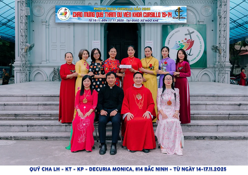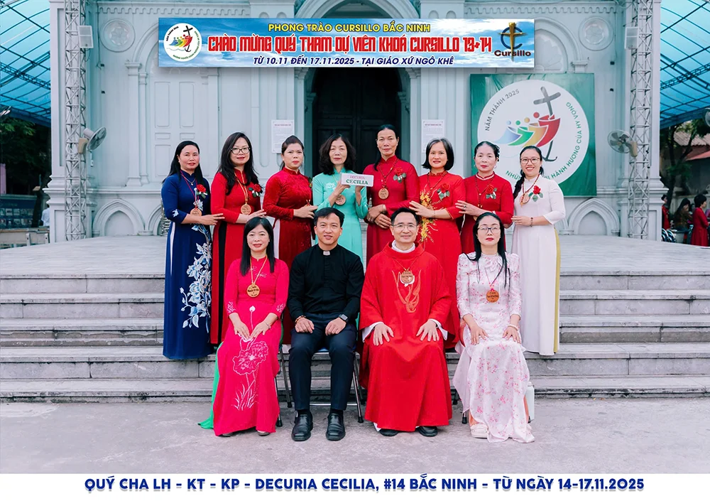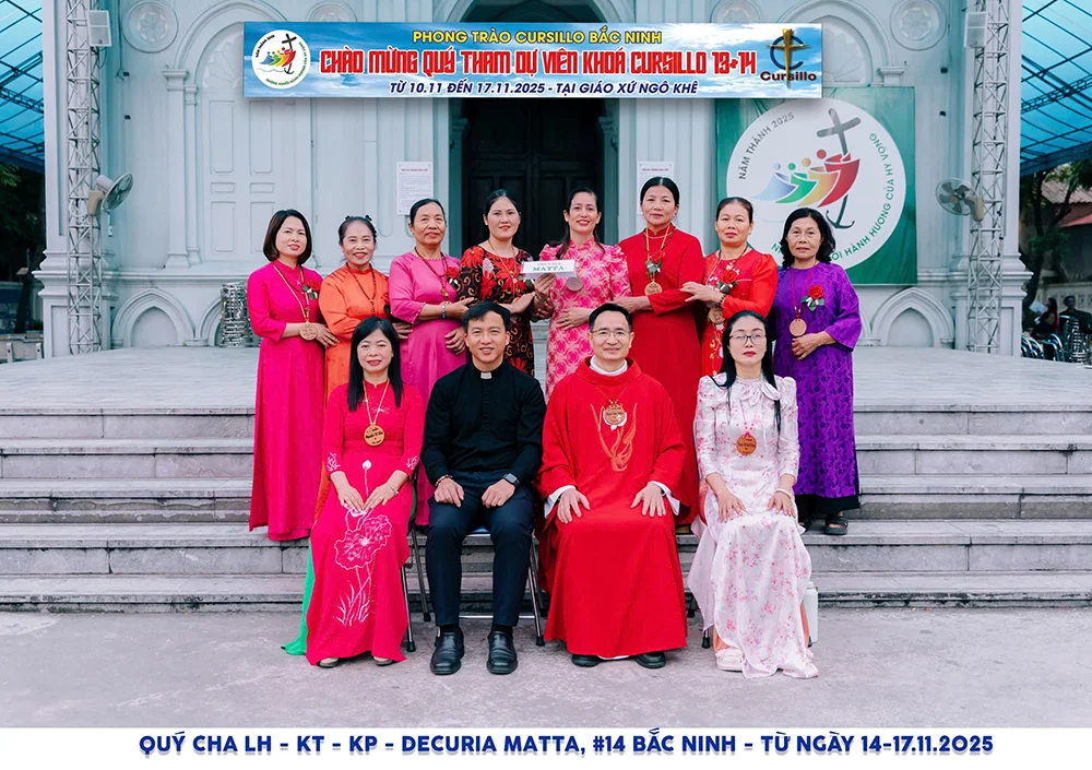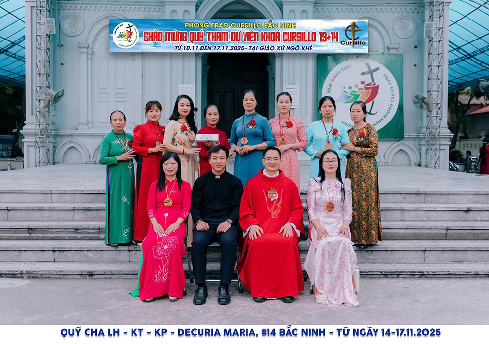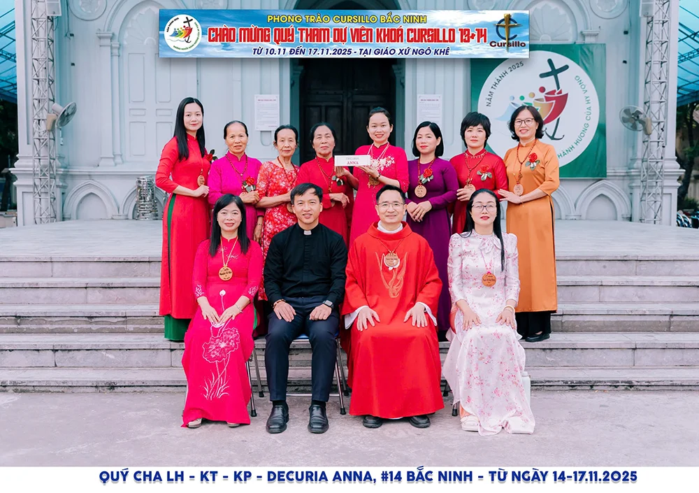 Trong bầu khí ân sủng của Năm Thánh 2025, Khóa Tĩnh Huấn Cursillo Khóa 14 – Nữ đã kết thúc vào chiều ngày 17.11.2025 tại giáo xứ Ngô Khê, để lại nhiều dấu ấn thiêng liêng trong tâm hồn tham dự viên. Khóa học quy tụ 54 tham dự viên, độ tuổi từ 32 đến 74, với sự đồng hành của Ban Điều Hành Khóa gồm chị Maria Nguyễn Thị Tuyết Phượng (VPĐHQG, Khóa trưởng) và chị Maria Nguyễn Tố Như (Bắc Ninh, Khóa phó), cùng sự phục vụ quảng đại của 37 chị trợ tá đến từ các giáo phận Xuân Lộc, Sài Gòn, Bùi Chu, Bắc Ninh.