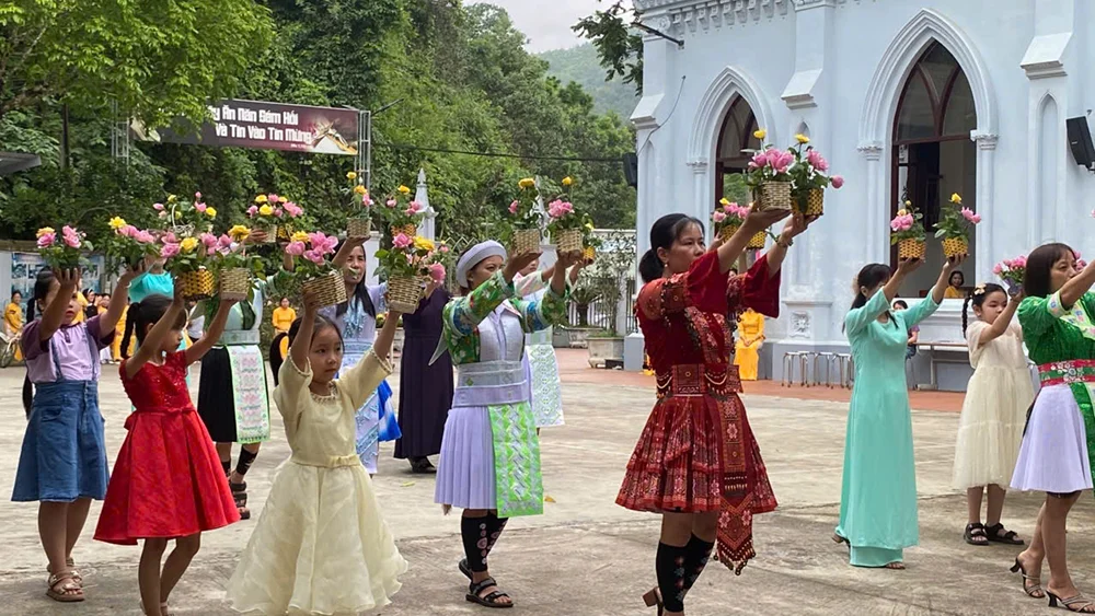 Từ các em thiếu nhi đến các bà mẹ vùng cao, từ người Kinh đến người Dao, H’Mông… mỗi người mang đến một đóa hoa – một tấm lòng, để cùng dâng lên Mẹ lời tạ ơn và khấn nguyện. Dù đơn sơ hay lộng lẫy, từng cánh hoa như thầm thì lời nguyện: “Xin Mẹ tiếp tục che chở, nâng đỡ đoàn con giữa bao gian khó đời thường.”