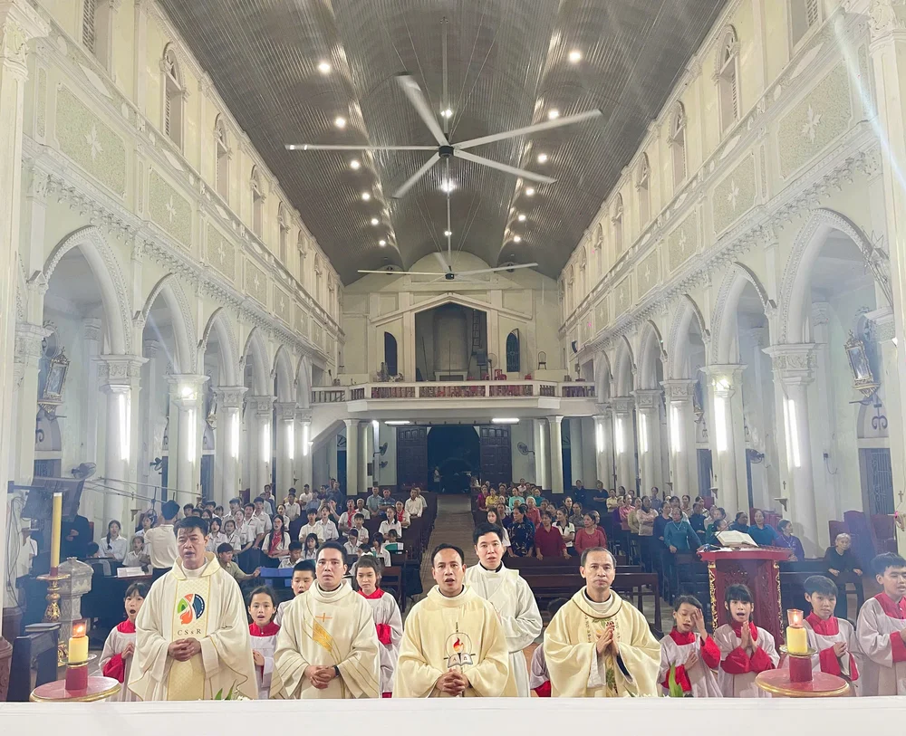 Chủ tế thánh lễ là cha Giuse Nguyễn Đức Trưởng – Trưởng Ban Thánh Nhạc. Đồng tế với ngài là cha Gioakim Nguyễn Văn Thoan – chánh xứ Nhã Lộng, quý cha trong Ban Thánh Nhạc Giáo phận, và sự hiện diện của quý thầy, quý dì trong Ban giảng huấn, các anh chị trợ giảng, đông đảo học viên và cộng đoàn dân Chúa.