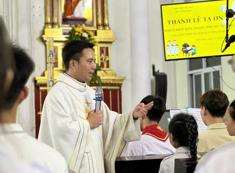 Trong bầu khí thánh thiện và sốt sắng, Thánh lễ tạ ơn bế giảng Khóa Đàn – Nhạc hè 2025 dành cho thiếu nhi hai giáo hạt Thái Nguyên và Tuyên Quang đã được cử hành long trọng vào lúc 19g45, ngày 22/07/2025 tại thánh đường Giáo xứ Nhã Lộng.