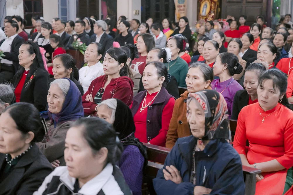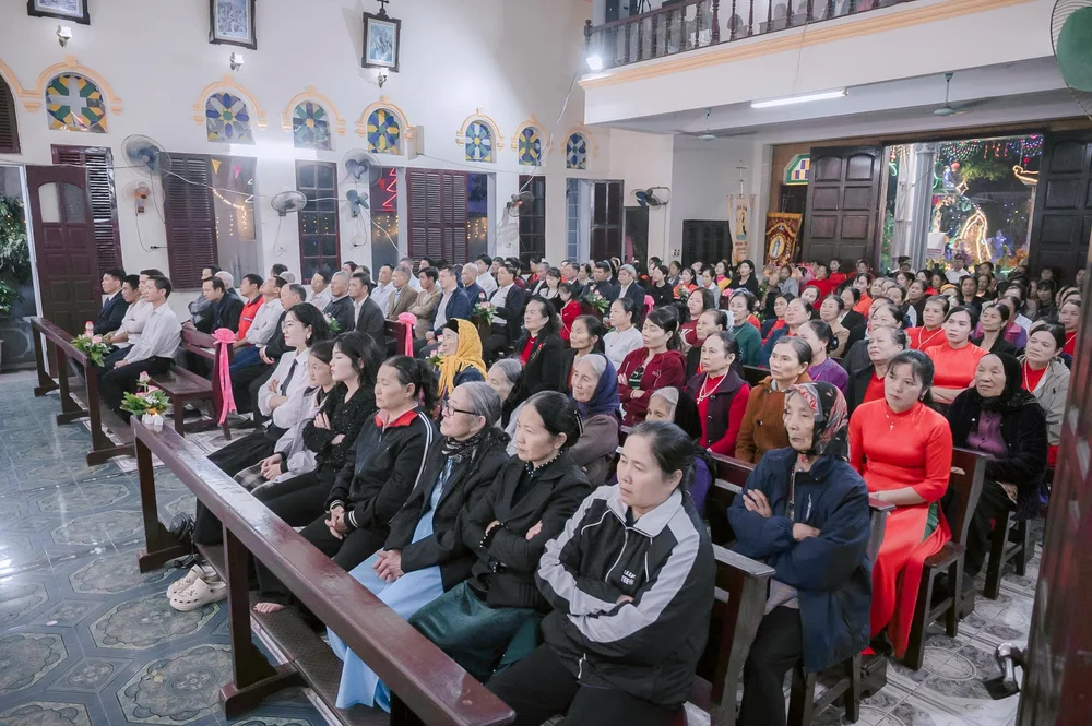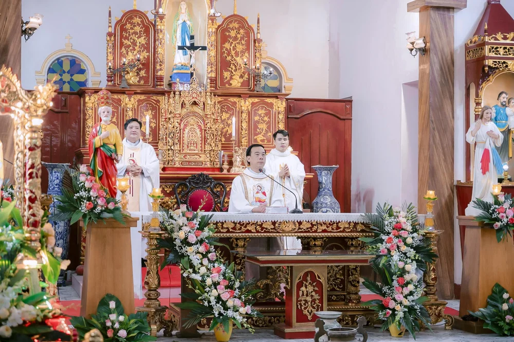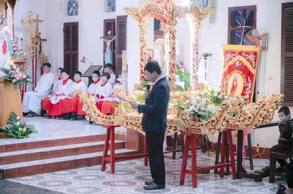 Ngay từ 19g00, đông đảo bà con giáo dân đã tề tựu về sân nhà thờ, cùng tham dự nghi thức xông hương kiệu hoa và kiệu Thánh quan thầy do cha xứ Gioan Baotixita Nguyễn Xuân Toàn chủ sự. Trong bầu khí linh thiêng, đoàn rước được long trọng khởi hành quanh giáo họ, như lời tuyên xưng sống động về lòng yêu mến và niềm cậy trông vào Mẹ Maria.