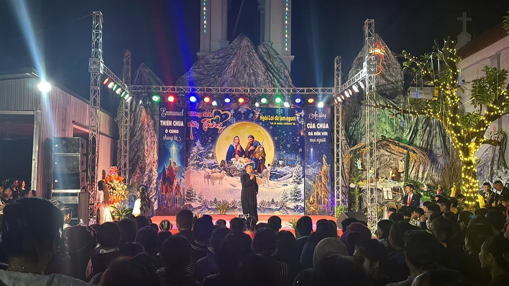 Sau Thánh lễ, vào lúc 19 giờ 30, Đêm Hoan ca Giáng Sinh chính thức khai mạc trong bầu khí ấm áp và tràn đầy niềm vui. Mở đầu chương trình, Cha Micae đã có lời khai mạc và tuyên bố khai mạc Đêm Hoan ca, gửi gắm ước mong niềm vui Giáng Sinh lan tỏa và gắn kết mọi người trong tình yêu thương.