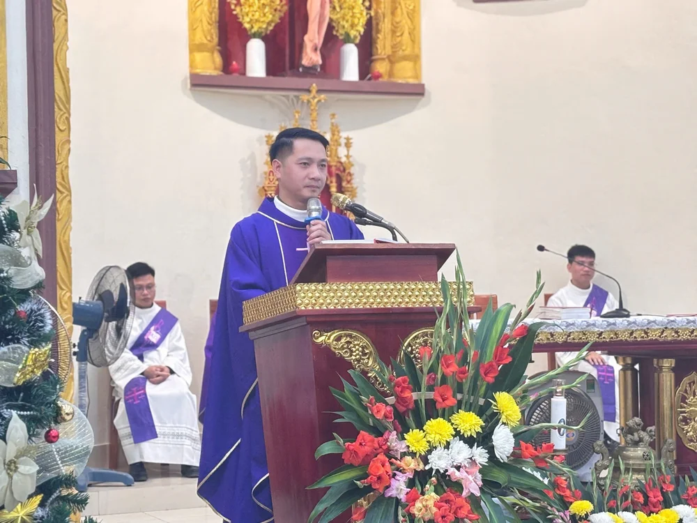 Vào lúc 18 giờ 00, Thánh lễ Giáng Sinh được cử hành trọng thể tại Hội Nhà Giáo họ Nghè. Đây là thời khắc thiêng liêng để cộng đoàn cùng nhau quy tụ bên bàn thánh, dâng lời tạ ơn Thiên Chúa và chuẩn bị tâm hồn đón mừng mầu nhiệm Con Thiên Chúa giáng sinh làm người – Đấng đem bình an, niềm vui và hy vọng đến cho toàn thể nhân loại.