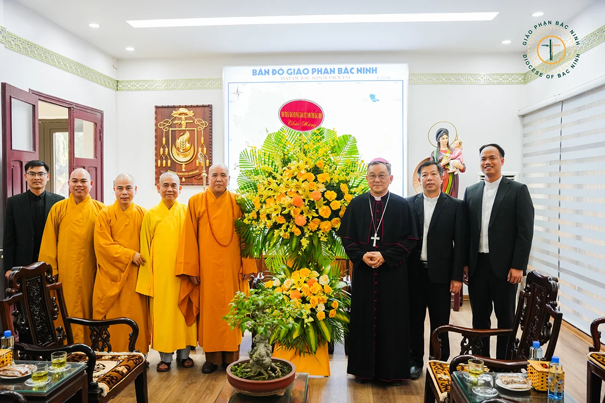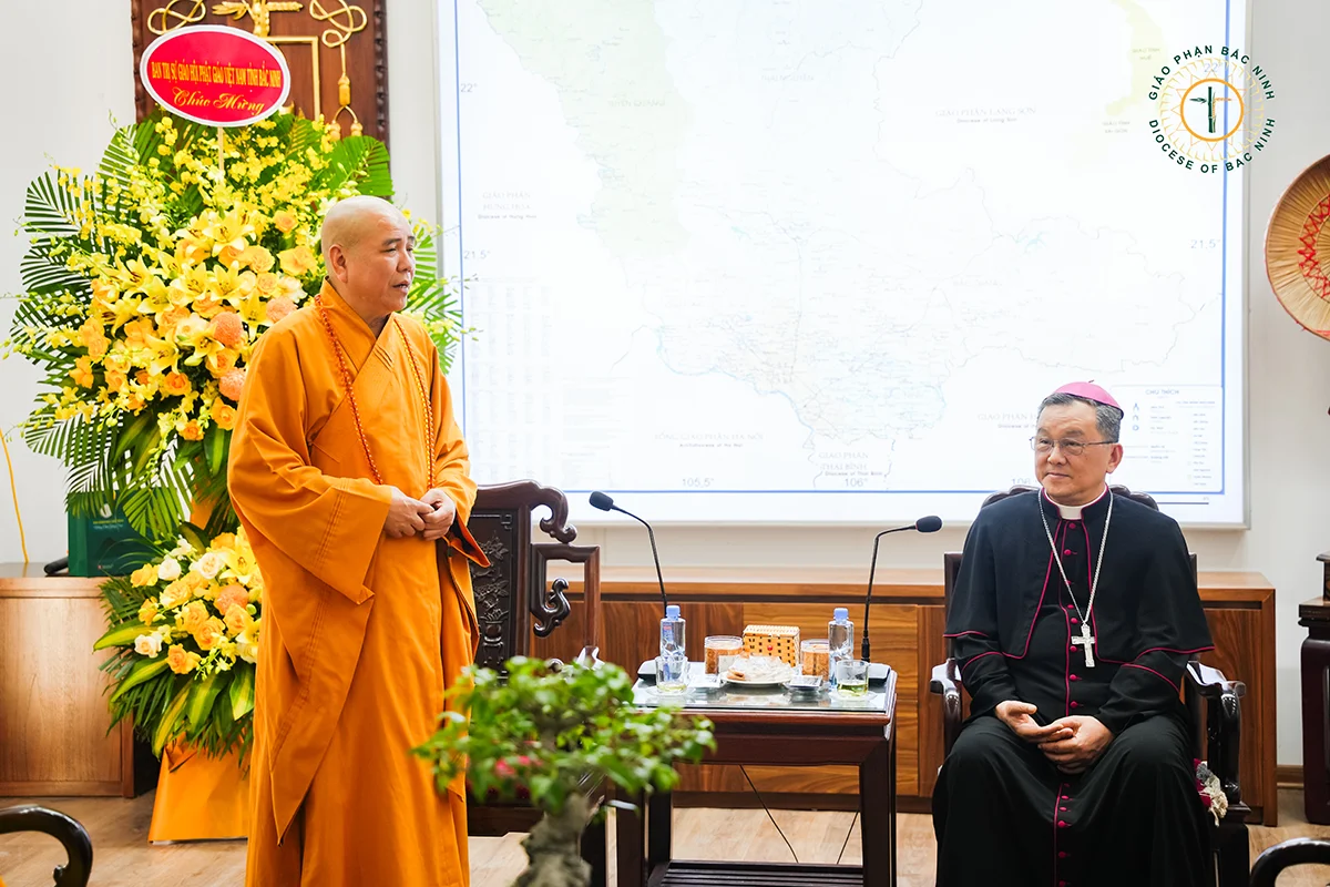 Vào buổi chiều cùng ngày, lúc 15 giờ, Đoàn của Ban Trị Sự Giáo hội Phật Giáo Việt Nam tỉnh Bắc Ninh cũng đã tới Toà Giám Mục Bắc Ninh chúc mừng giáng sinh.