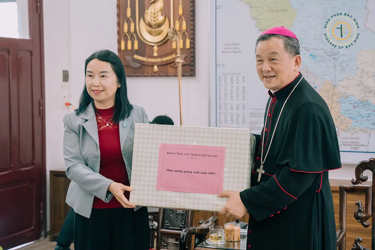Sau đó, lúc 11 giờ 30 phút, Đoàn Công tác Ban Tuyên Giáo và Dân Vận tỉnh Tuyên Quang đến với Giáo phận Bắc Ninh cùng những lời chúc tốt đẹp.