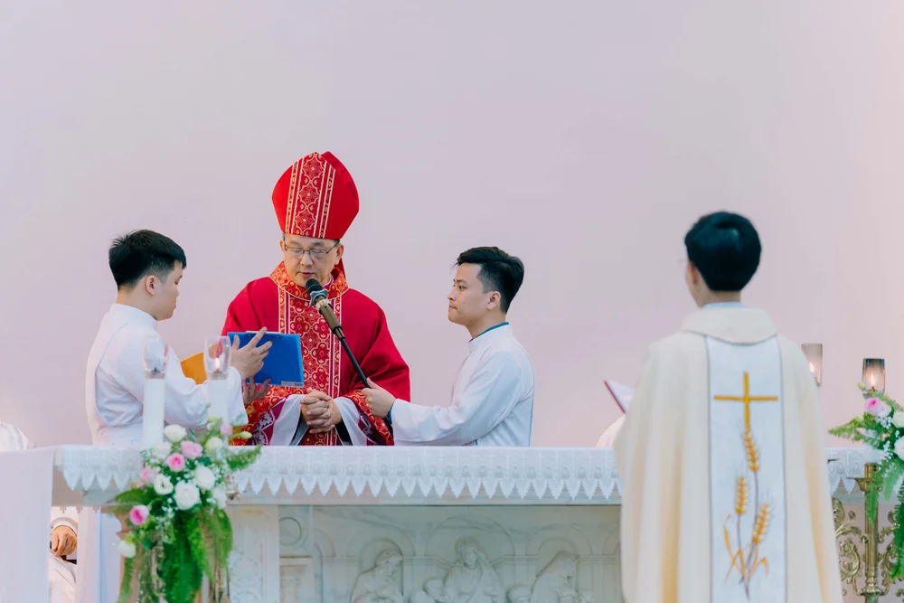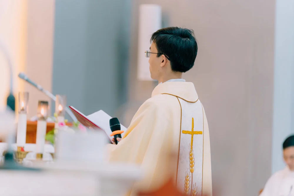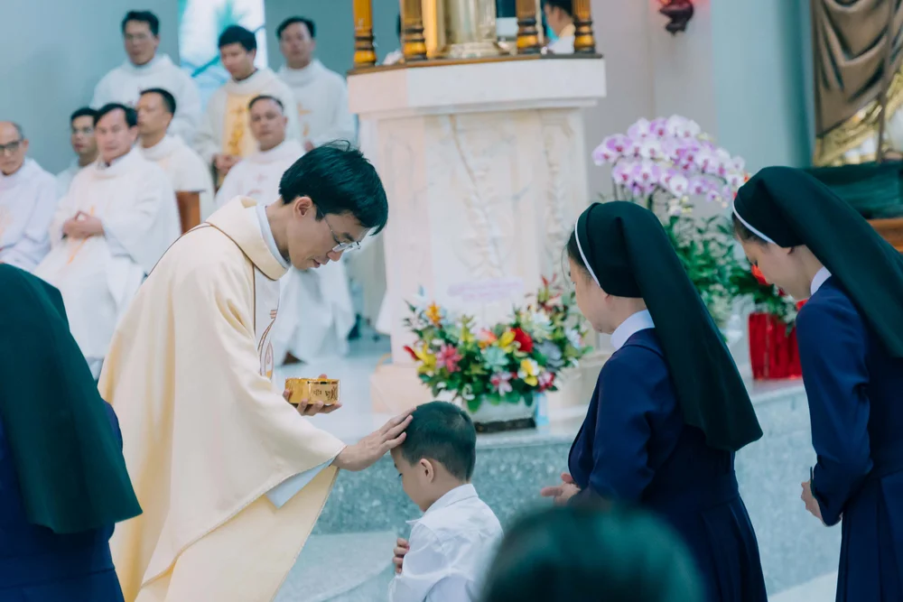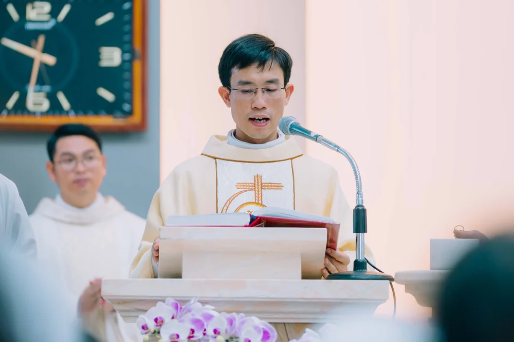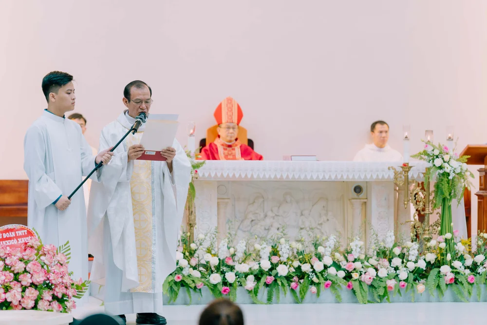 Mở đầu thánh lễ, Đức Cha Giuse thân ái giới thiệu Cha tân chính xứ Giuse với cộng đoàn. Sau khi Cha Quản hạt công bố thư bổ nhiệm, Cha Giuse long trọng tuyên xưng đức tin và thề hứa trung thành với sứ vụ được trao, đặt tay trên Sách Thánh và cất tiếng nguyện: “Nguyện xin Thiên Chúa và Sách Tin Mừng tôi đặt tay đây giúp sức cho tôi.”
