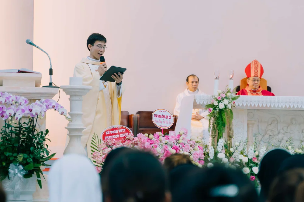 Cuối Thánh lễ, vị đại diện giáo xứ thay lời cộng đoàn dâng lời cảm tạ Đức Cha, quý Cha, quý khách và toàn thể cộng đoàn. Trong tâm tình xúc động, hai vị mục tử mới – Cha Giuse và Cha Triết – bày tỏ lòng biết ơn Thiên Chúa, Đức Cha, quý Cha và toàn thể giáo xứ. Với nụ cười hiền hòa xen lẫn chút bối rối, các ngài ví mình như “cô dâu mới về nhà chồng”, khi bắt đầu hành trình mới nơi mảnh đất đầy tình nghĩa này.