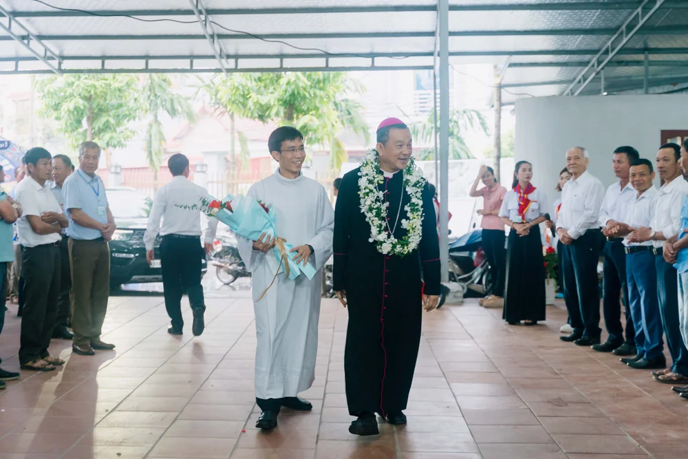 Vào lúc 7h30 sáng, tiếng chuông nhà thờ ngân vang, hòa cùng tiếng vỗ tay và reo mừng của cộng đoàn, chào đón Cha tân chính xứ Giuse Trương Văn Tú và Cha phó Gioan Baotixita Bùi Trần Xuân Triết – hai mục tử trẻ được Thiên Chúa gửi đến để tiếp nối hành trình đức tin nơi mảnh đất An Tràng thân yêu.