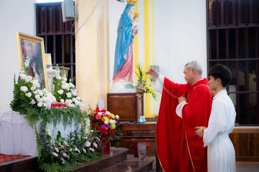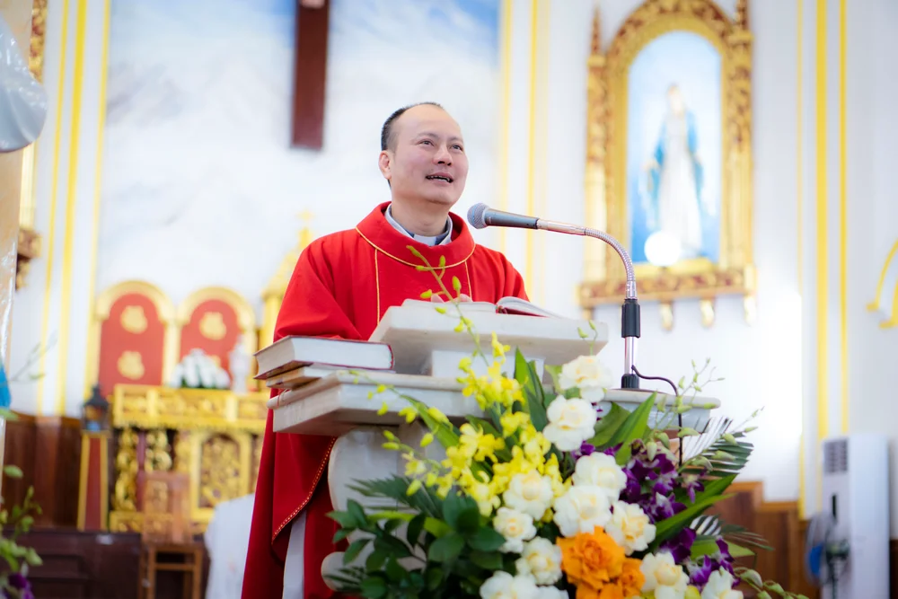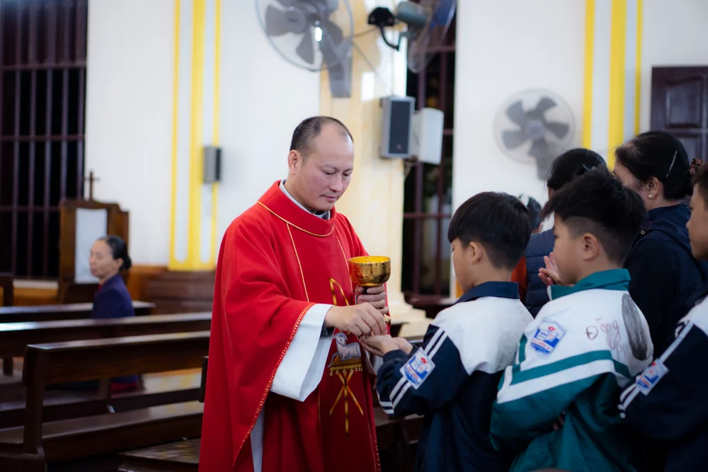 Thánh lễ được cử hành trang trọng dưới sự chủ tế của Cha xứ Đaminh, cùng Cha đồng tế Phanxicô Xavie, làm trổi bật niềm vui và ý nghĩa của ngày lễ đặc biệt này. Sự hiện diện và lời chúc lành của quý Cha như tiếp thêm sức mạnh thiêng liêng cho hành trình phục vụ của ca đoàn.