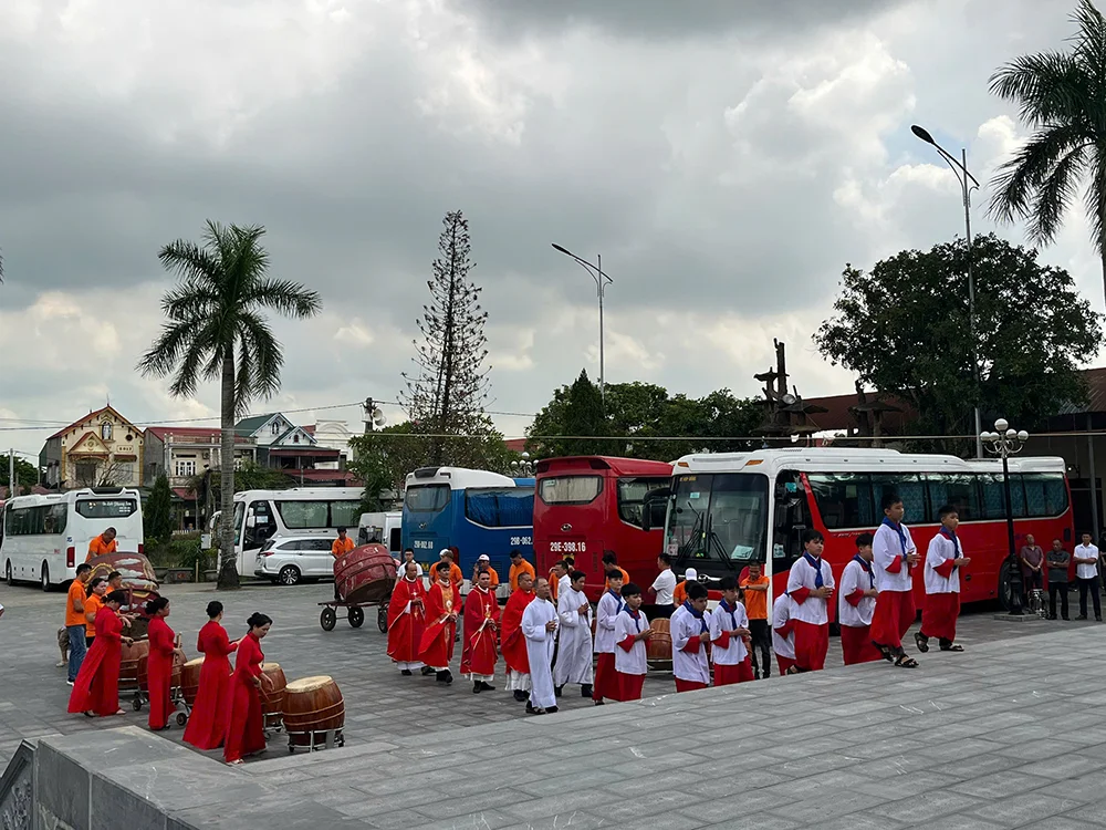 Ngay từ sáng sớm, mọi người đã tập trung đông đủ, di chuyển bằng các chuyến xe trong tinh thần hiệp thông và sốt sắng.