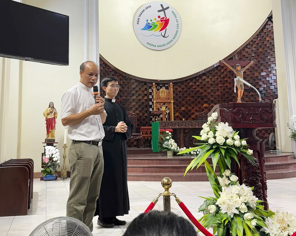 Đến nơi, cộng đoàn được lắng nghe giới thiệu về lịch sử hình thành và phát triển của giáo xứ Lai Tê là điểm hành hương được chỉ định trong Năm Thánh 2025. Qua sự chia sẻ của cha giảng thuyết, mọi người thêm hiểu rõ ý nghĩa của hành trình đức tin, đồng thời ý thức hơn về giá trị ân sủng năm thánh.
