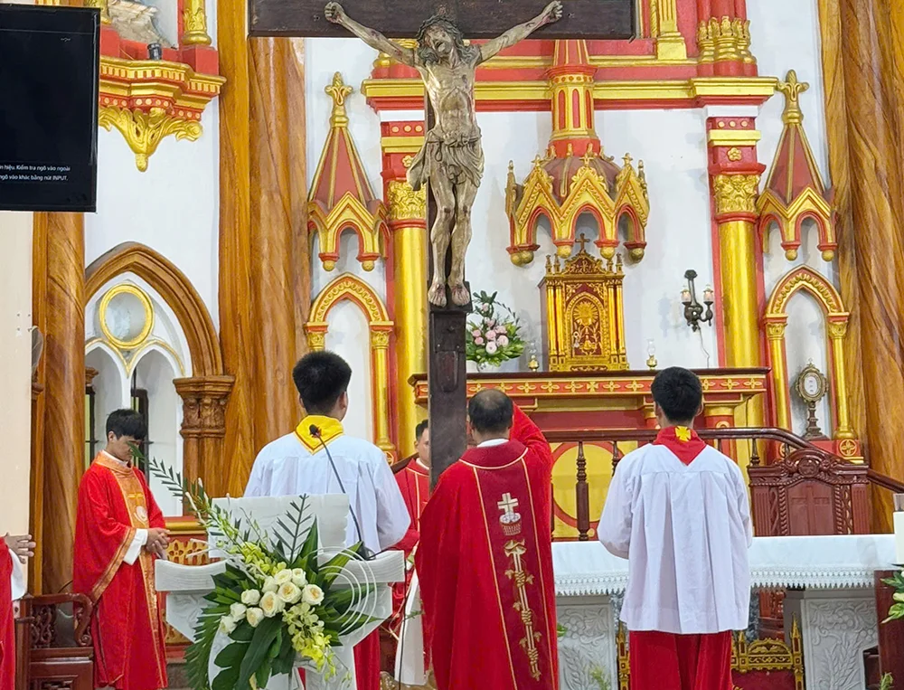 Tiếp đến, đoàn hành hương trở về Nhà thờ Chính Toà Bắc Ninh để viếng Thánh Giá lịch sử của Giáo phận.