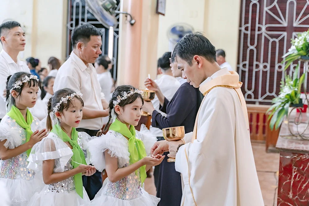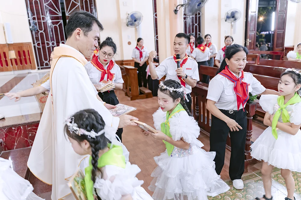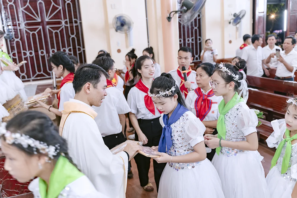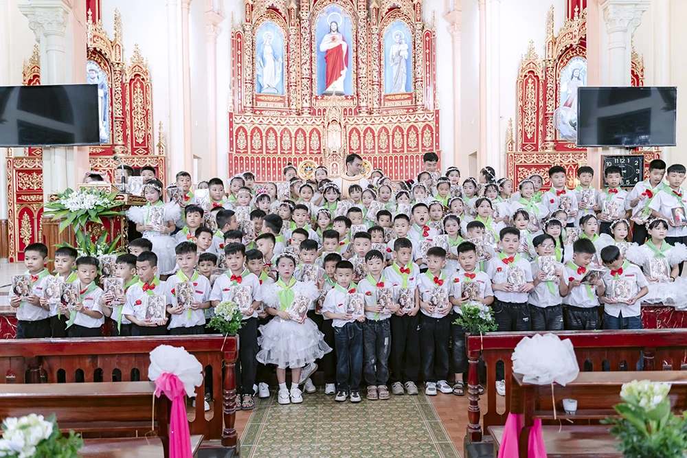 Tối ngày 6/9/2025, tại Nhà thờ Giáo xứ Đại Từ, 101 em thiếu nhi trong xứ đã đón nhận hồng ân rước Chúa Giêsu Thánh Thể lần đầu tiên trước sự chứng kiến của phụ huynh và đông đảo cộng đoàn.