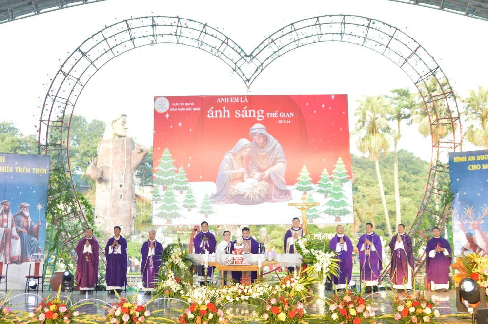 Vào lúc 16 giờ, Thánh lễ Chúa Nhật IV Mùa Vọng được cử hành long trọng do Cha Quản hạt Giuse Đinh Văn Thành chủ tế, cùng quý cha đồng tế và sự hiệp thông sốt sắng của cộng đoàn. Thánh lễ mở đầu cho chương trình Diễn nguyện và Hoan ca Giáng Sinh, dẫn đưa mọi người bước vào niềm vui thánh thiện khi chiêm ngắm Con Thiên Chúa giáng trần vì yêu thương nhân loại.
