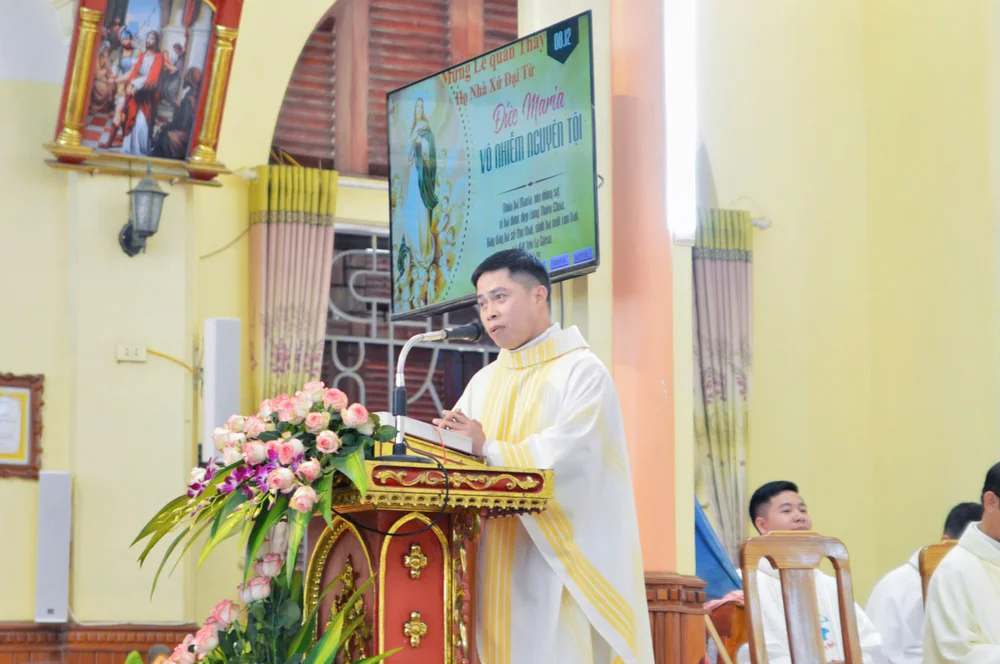 Trong bài giảng lễ, Cha Đaminh gợi lại lời Thánh Vịnh: “Hát lên mừng Chúa một bài ca mới” – cũng là lời ca ngợi Mẹ Maria, người phụ nữ đã để cho ân sủng của Thiên Chúa chạm đến và biến đổi đời mình cách trọn vẹn nhất. Khi lắng nghe lời truyền tin của sứ thần, Mẹ đã khiêm nhường thưa “Xin Vâng”, mở ra hành trình cộng tác vào kế hoạch cứu độ.