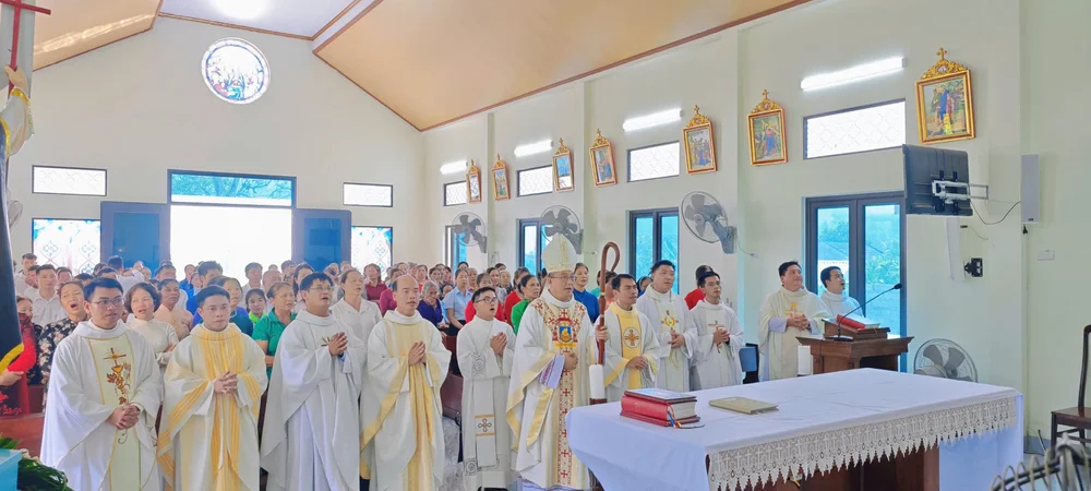 Thánh lễ tạ ơn do Đức Cha Giuse Đỗ Quang Khang – Giám mục Giáo phận Bắc Ninh – chủ sự. Đồng tế với ngài có Cha xứ Giuse, quý cha trong giáo phận, cùng sự hiện diện đông đảo của quý tu sĩ, ân nhân, và bà con giáo dân gần xa. Trong bầu khí vui tươi, phấn khởi, mọi người cùng dâng lời tạ ơn Thiên Chúa vì hồng ân lớn lao này.
