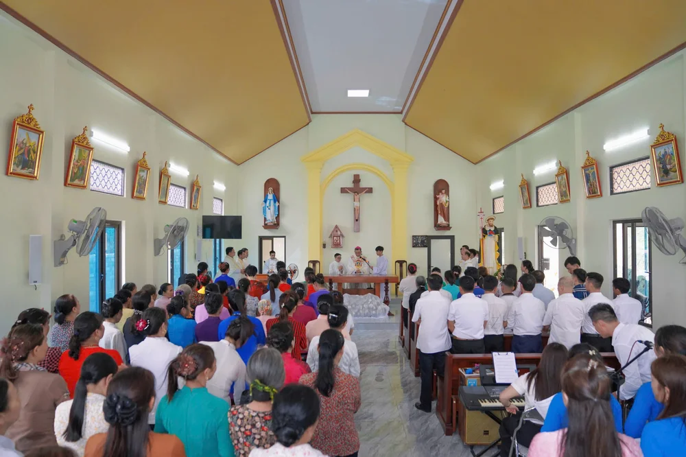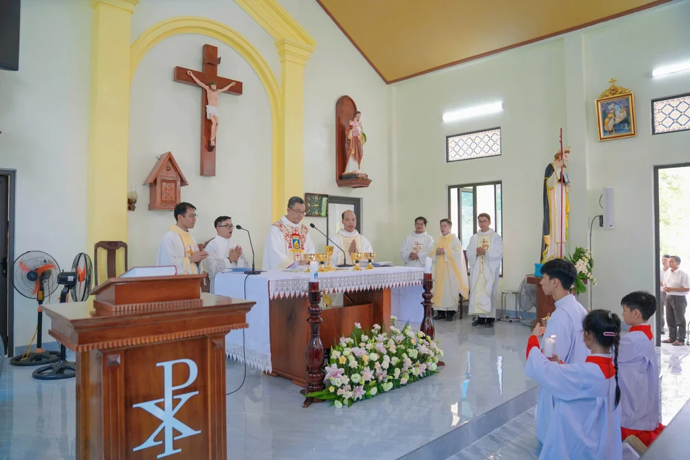 Sau bài giảng, Đức Cha chủ sự nghi thức làm phép bàn thờ – nơi Hy tế Thánh Thể sẽ được dâng lên hằng ngày. Từng cử chỉ phụng vụ, từng lời kinh đều thấm đượm niềm xúc động. Từ nay, nơi đây sẽ là trung tâm đức tin của giáo họ.
