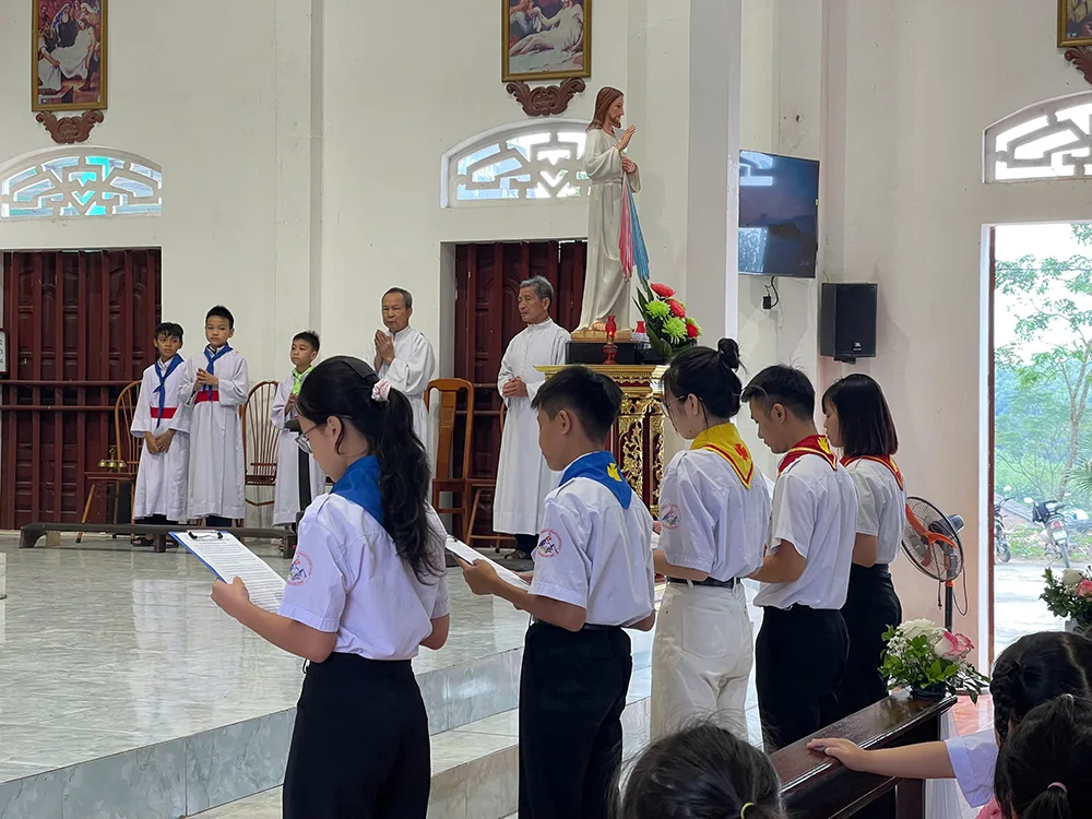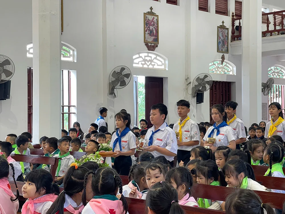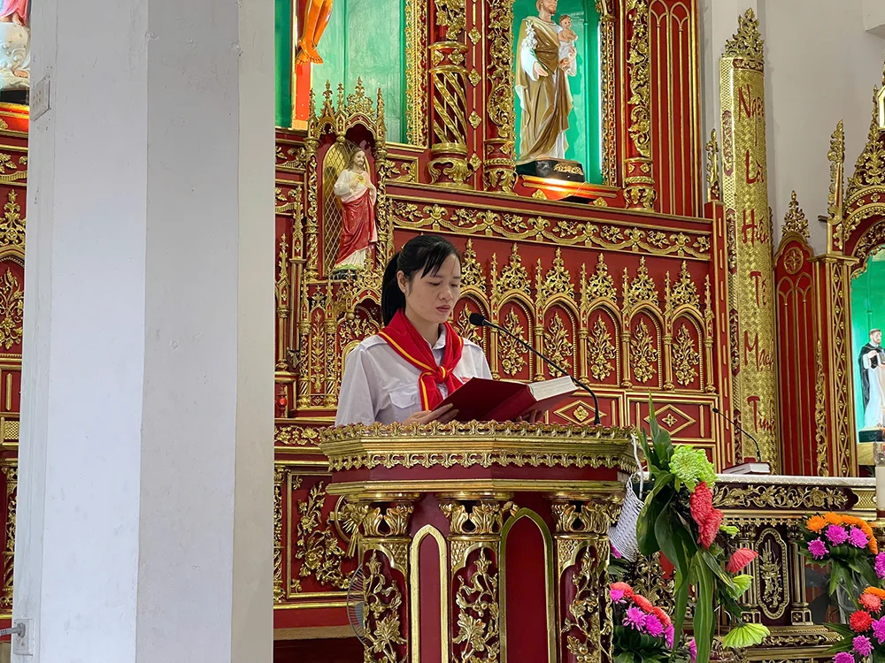 Trong bài giảng Lời Chúa, cha xứ Giuse mời gọi các em thiếu nhi biết tập vác thập giá, biết trở nên những “chứng nhân nhỏ” giữa đời thường bằng cách: sống đơn sơ, bác ái, trung thực và nhiệt thành trong bổn phận, để hạt giống đức tin mà các vị tử đạo đã gieo bằng máu đào vẫn tiếp tục trổ sinh nơi mỗi người hôm nay.