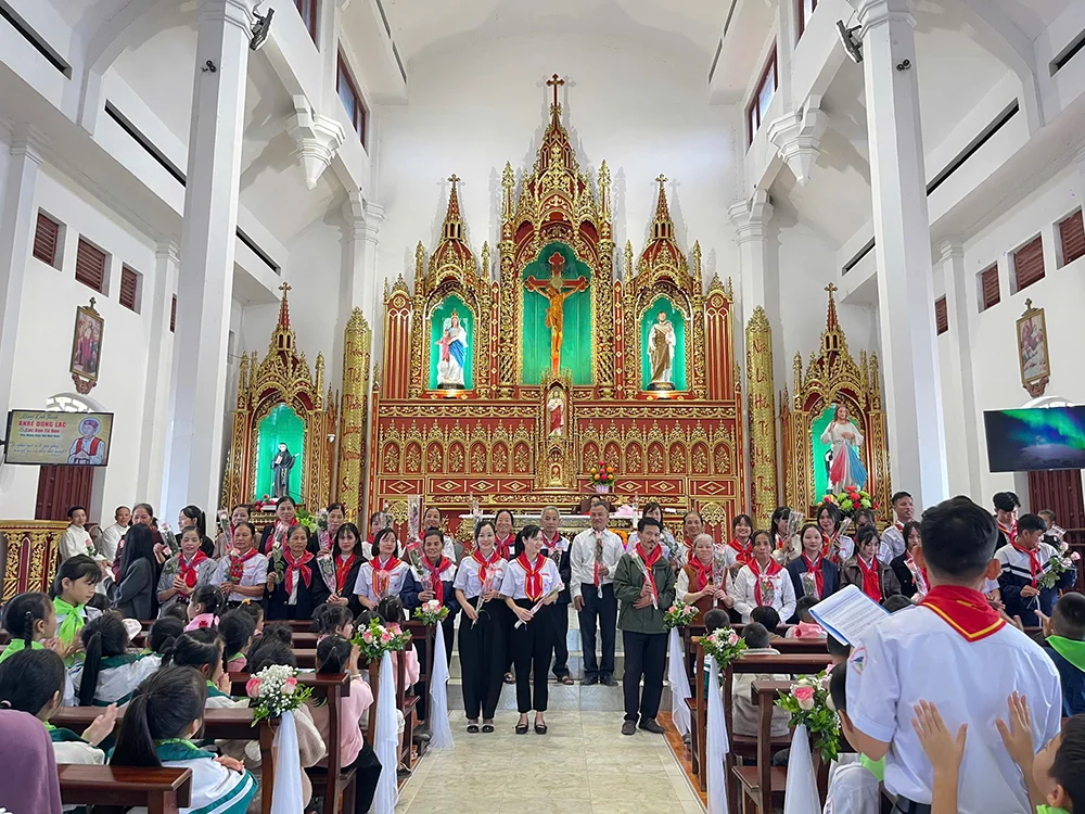 Vào sáng Chúa Nhật, ngày 16.11.2025, cộng đoàn Giáo xứ Đức Bản, giáo hạt Tuyên Quang long trọng cử hành Lễ các Thánh Tử Đạo Việt Nam mừng bổn mạng Đoàn Thiếu Nhi Thánh Thể Anrê Dũng Lạc – vị mục tử kiên trung, mẫu gương đức tin sáng ngời cho mọi thế hệ. Thánh lễ do Cha xứ Giuse Nguyễn Văn Quân chủ sự.