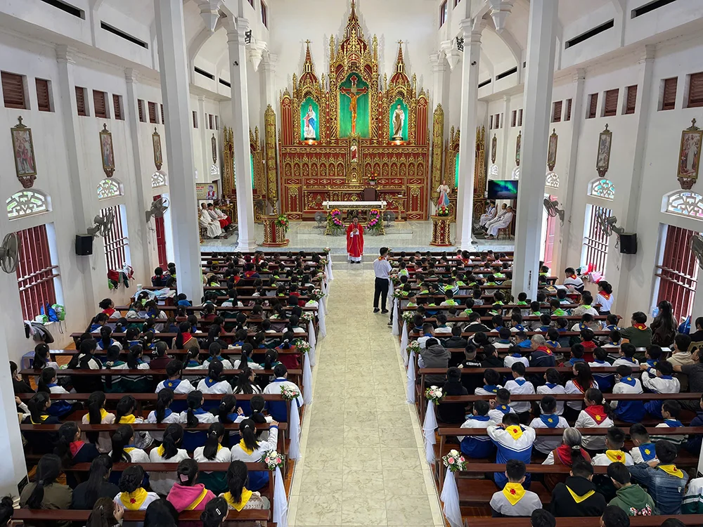 Thánh lễ diễn ra trong bầu khí trang nghiêm và sốt sắng. Các em thiếu nhi, quý Dì, huynh trưởng và quý phụ huynh cùng hiện diện đông đủ, dâng lên Chúa lời tạ ơn vì muôn ơn lành, đồng thời xin cho đoàn biết noi gương các Thánh Tử Đạo: sống đức tin mạnh mẽ, yêu Chúa tha thiết và phục vụ tha nhân bằng trái tim quảng đại.