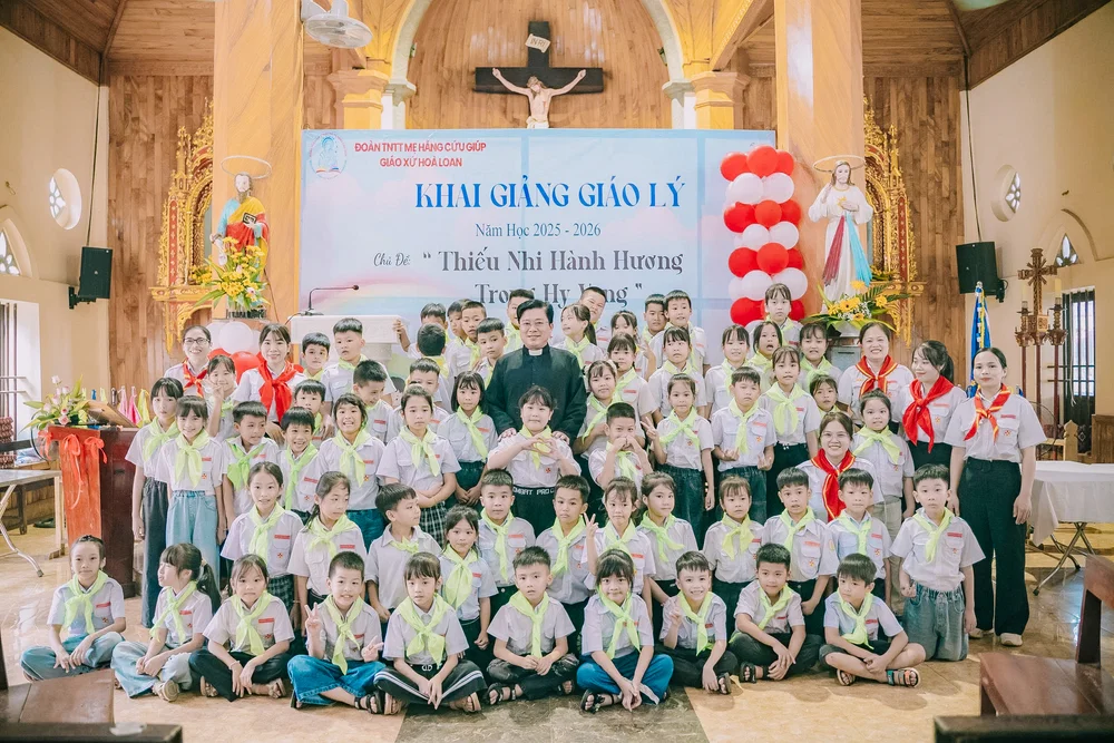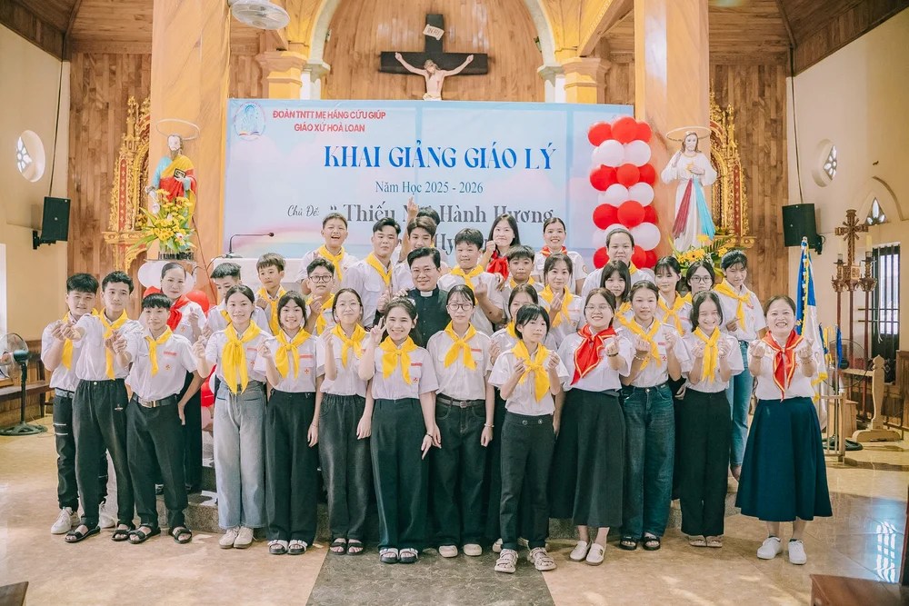 Trong niềm vui hân hoan của ngày khai giảng năm học giáo lý mới, Đoàn Thiếu Nhi Thánh Thể giáo xứ Hòa Loan đã cùng nhau quy tụ nơi ngôi thánh đường thân thương để hiệp dâng Thánh lễ khai giảng năm học giáo lý, khởi đầu cho một hành trình học hỏi và sống đức tin.