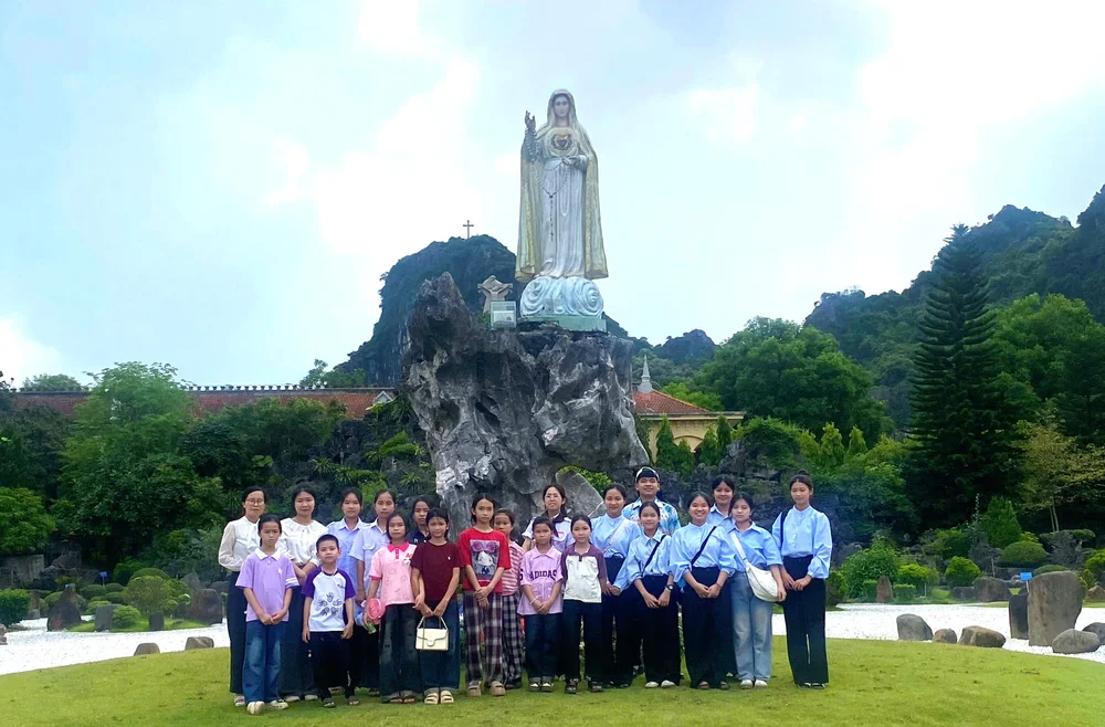 Buổi chiều, lúc 14h30, hành trình tiếp tục đưa đoàn về với Đan viện Xitô Châu Sơn – Ninh Bình. Tại nơi thanh vắng và linh thánh này, đoàn hành hương được diễm phúc gặp gỡ và lắng nghe những tâm tình sâu sắc từ Đức Tổng Giuse Ngô Quang Kiệt. Cộng đoàn cũng được chiêm ngưỡng khung cảnh tĩnh mịch, trang nghiêm của đan viện – nơi cất giữ biết bao lời kinh cầu nguyện của các đan sĩ âm thầm dâng lên Thiên Chúa mỗi ngày.