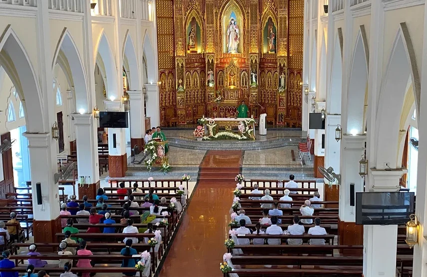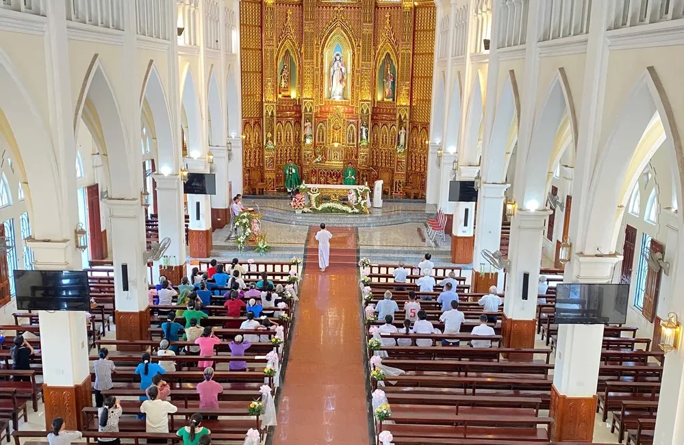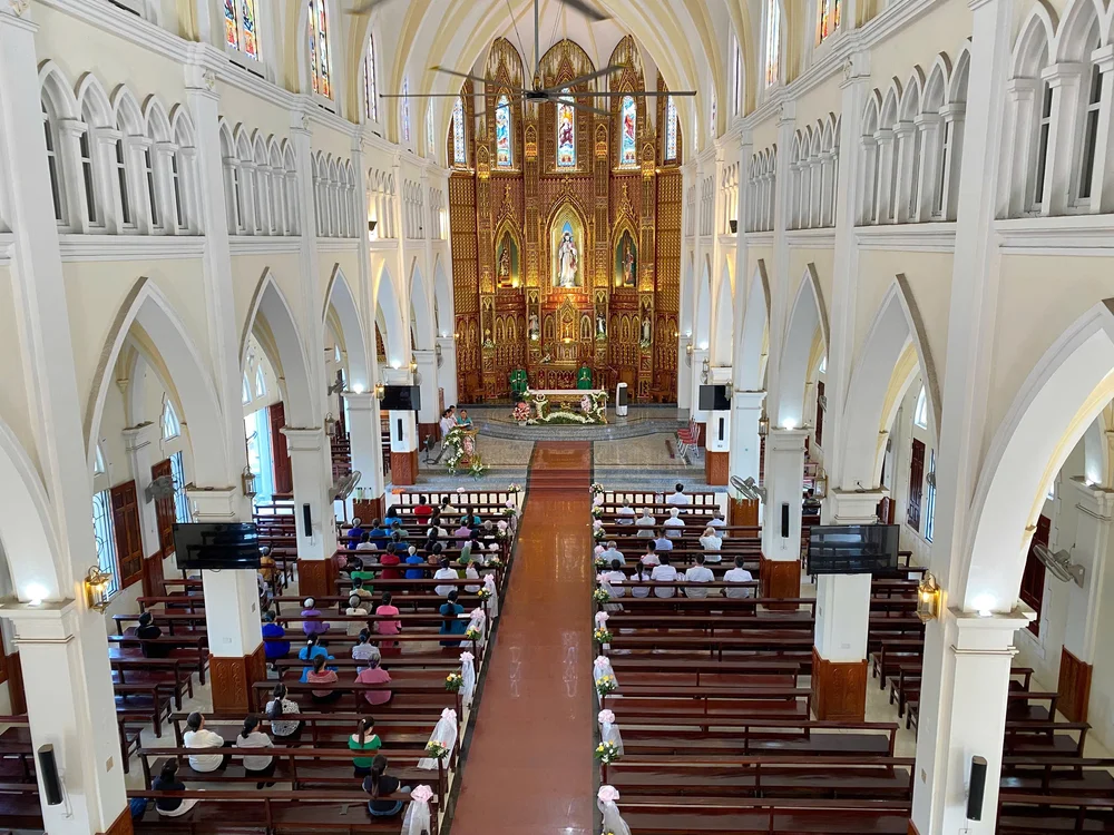 Thánh lễ trọng thể diễn ra lúc 15h tại thánh đường giáo xứ Vân Cương. Cha xứ Gioan M. chủ sự, cùng với Cha phó Irene M. đồng tế.