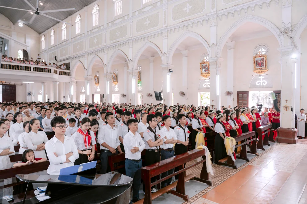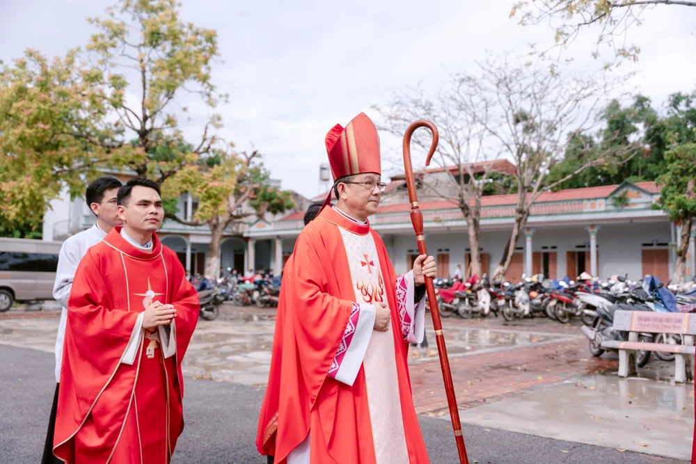 Đồng tế với Đức Cha có Cha xứ Gioakim Nguyễn Văn Thoan, Cha Phaolô Đào Văn Trường, Quý cha khách, cùng sự hiện diện đông đảo của cộng đoàn dân Chúa, quý phụ huynh và các em thiếu nhi trong giáo xứ.