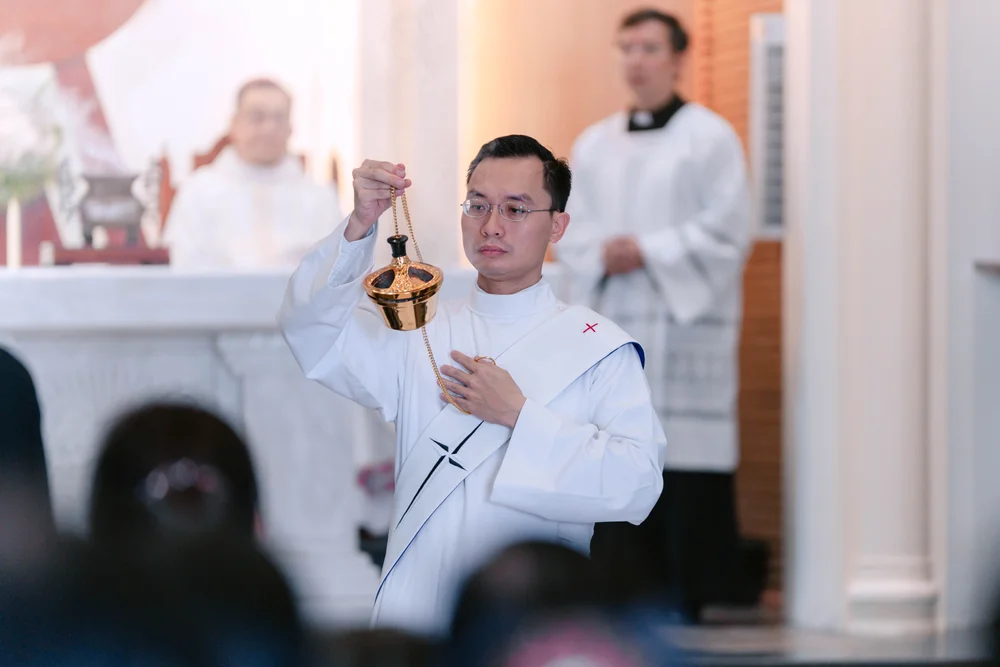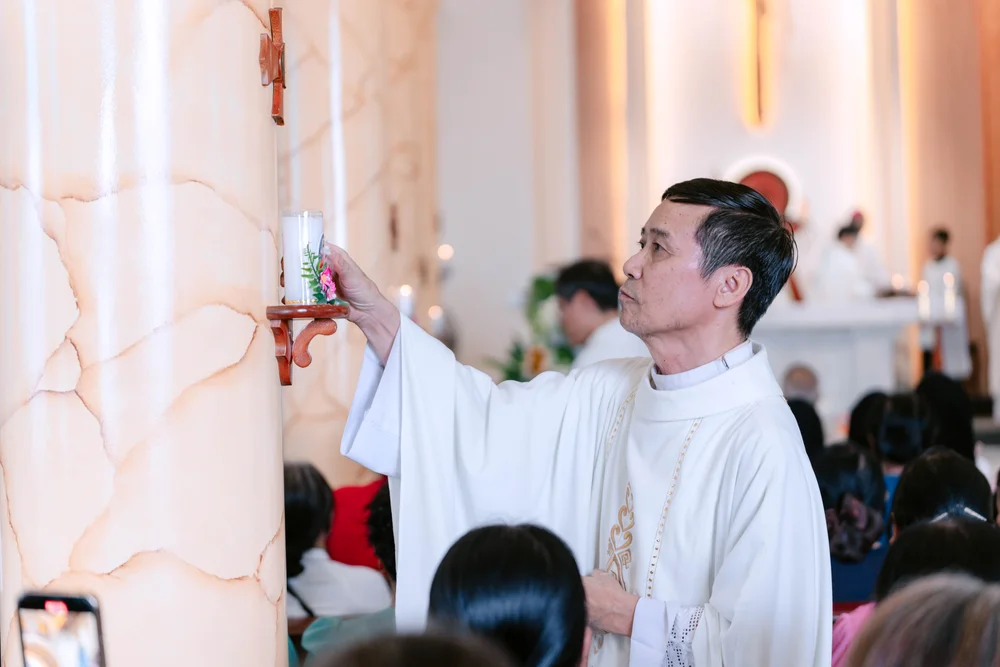 Khi những ngọn nến được thắp sáng trên các trụ ấy, ánh sáng Đức Kitô như lan tỏa, mời gọi mỗi tín hữu – những viên đá sống động – trở nên ánh sáng giữa đời. Khói hương trầm bay lên từ bàn thờ và khắp thánh đường, diễn tả lời cầu nguyện của cộng đoàn vươn tới Thiên Chúa, và cũng là dấu chỉ Chúa Thánh Thần thánh hóa toàn thể ngôi nhà thờ và cộng đoàn.
