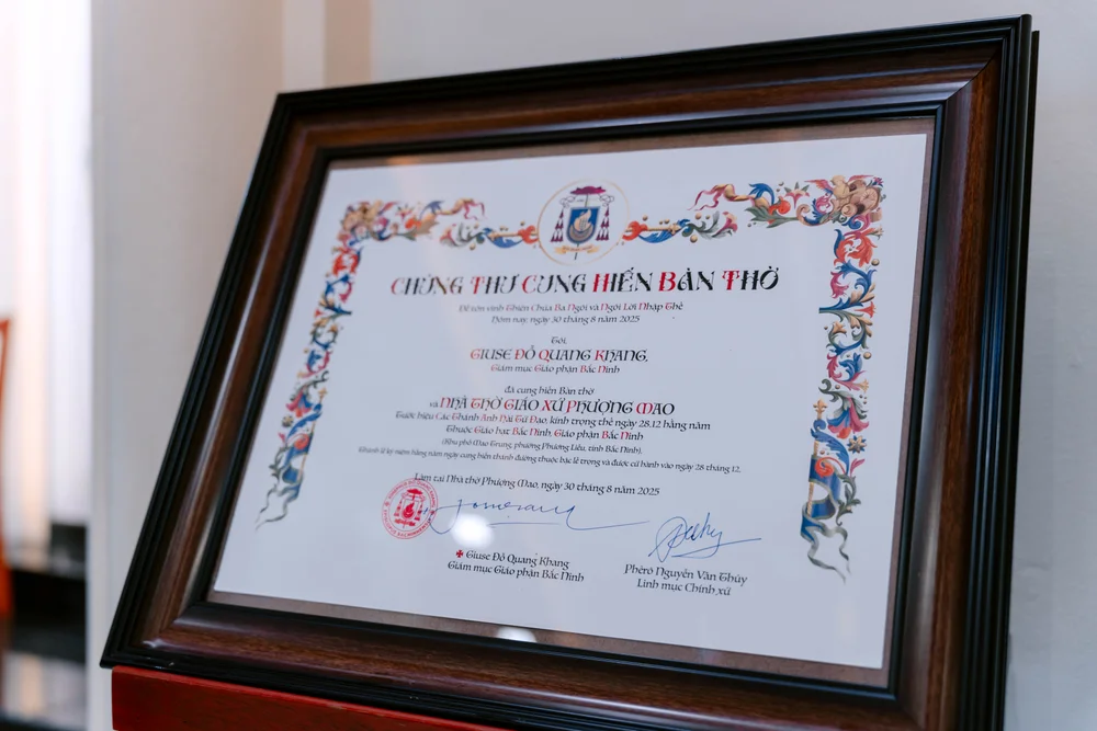 Sáng ngày 30 tháng 8 năm 2025, trong bầu khí linh thiêng và chan chứa niềm vui, Giáo xứ Phượng Mao đã hân hoan cử hành Thánh lễ Tạ ơn, làm phép Nhà giáo lý và long trọng cung hiến ngôi thánh đường mới.