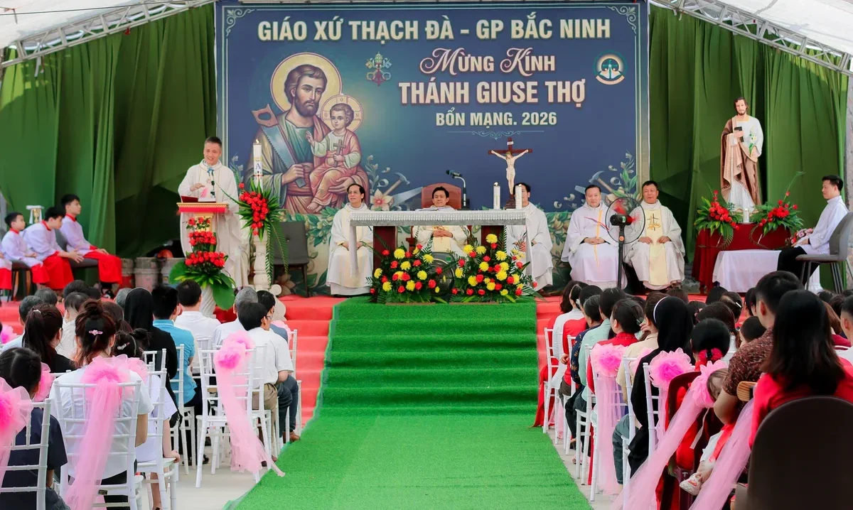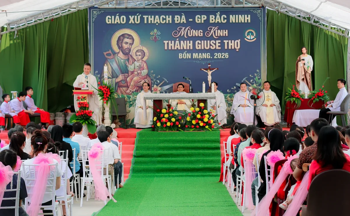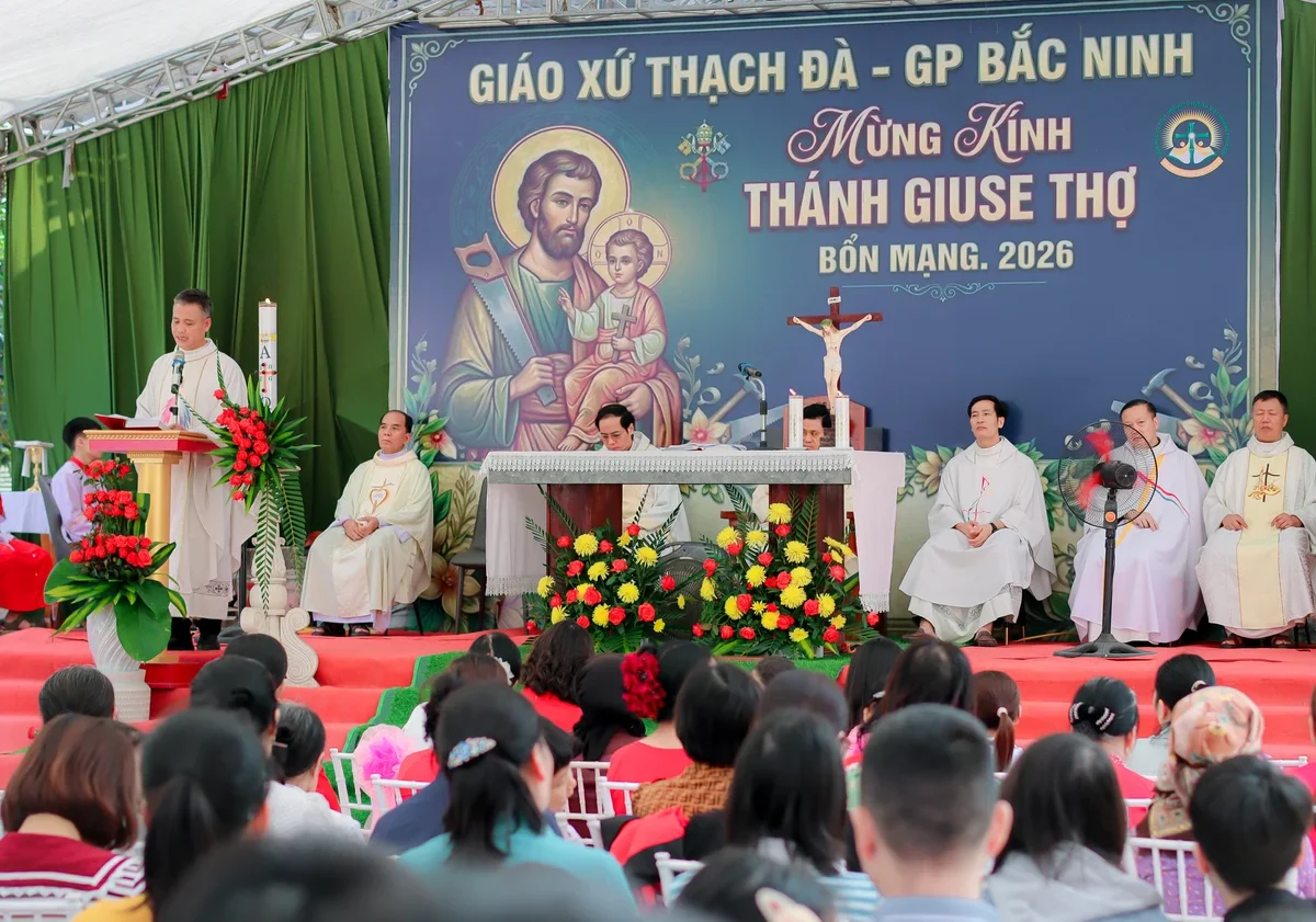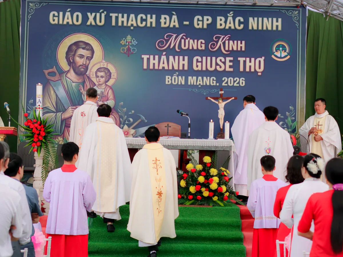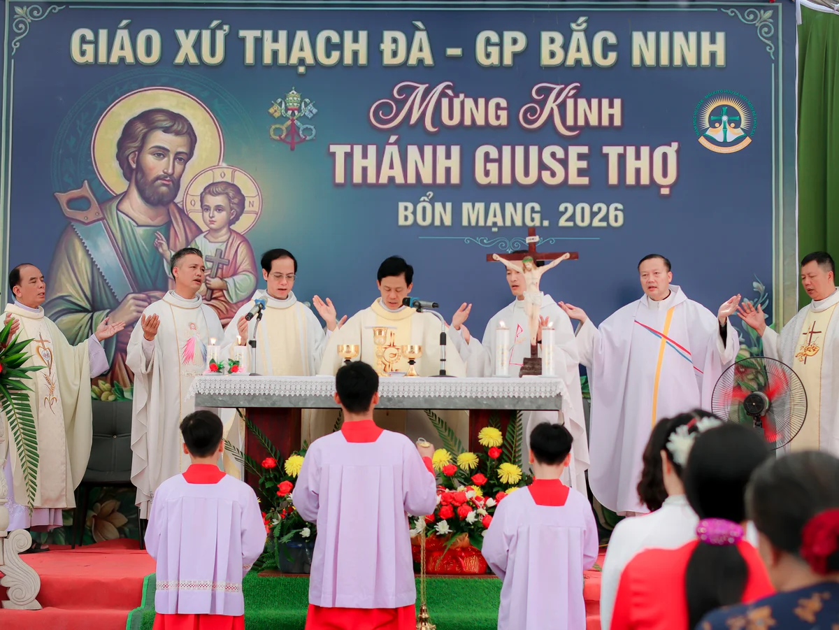 Hôm nay, ngày 30.04.2026, trong bầu khí hân hoan và sốt sắng, Giáo xứ Thạch Đà long trọng mừng lễ Quan Thầy Thánh Giuse – Đấng bảo trợ của giáo xứ.Hiện diện trong thánh lễ hôm nay có Cha xứ và Cha phó Giáo xứ Thạch Đà. Cùng đồng tế với các ngài có cha Tôma Aquinô Nguyễn Văn Phùng – Quản hạt Nội Bài, Cha Đaminh Nguyễn Văn Bích – chánh xứ Tiên Lục, Cha Giuse Đinh Văn Chức – Dòng Mẹ Chúa Cứu Chuộc, Cha Hiêrônimô Nguyễn Văn Tính – Chánh xứ An Bài, và Cha Giuse Trần Văn Hưng – Dòng Chúa Cứu Thế. Cộng đoàn vui mừng chào đón sự hiện diện quý báu của toàn thể quý khách trong và ngoài giáo xứ, giáo hạt đã về tham dự Thánh lễ.