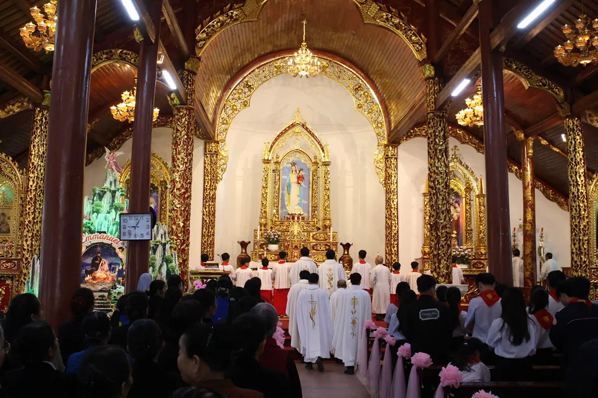 Thánh lễ diễn ra trong bầu khí sốt sắng và trang nghiêm, do Cha xứ Giuse Mai Viết Dương chủ tế. Đồng tế với ngài có quý Cha quê hương, Quý Cha các xứ lân cận. Hiện diện trong Thánh lễ có quý tu sĩ và cộng đoàn dân Chúa trong và ngoài giáo xứ.