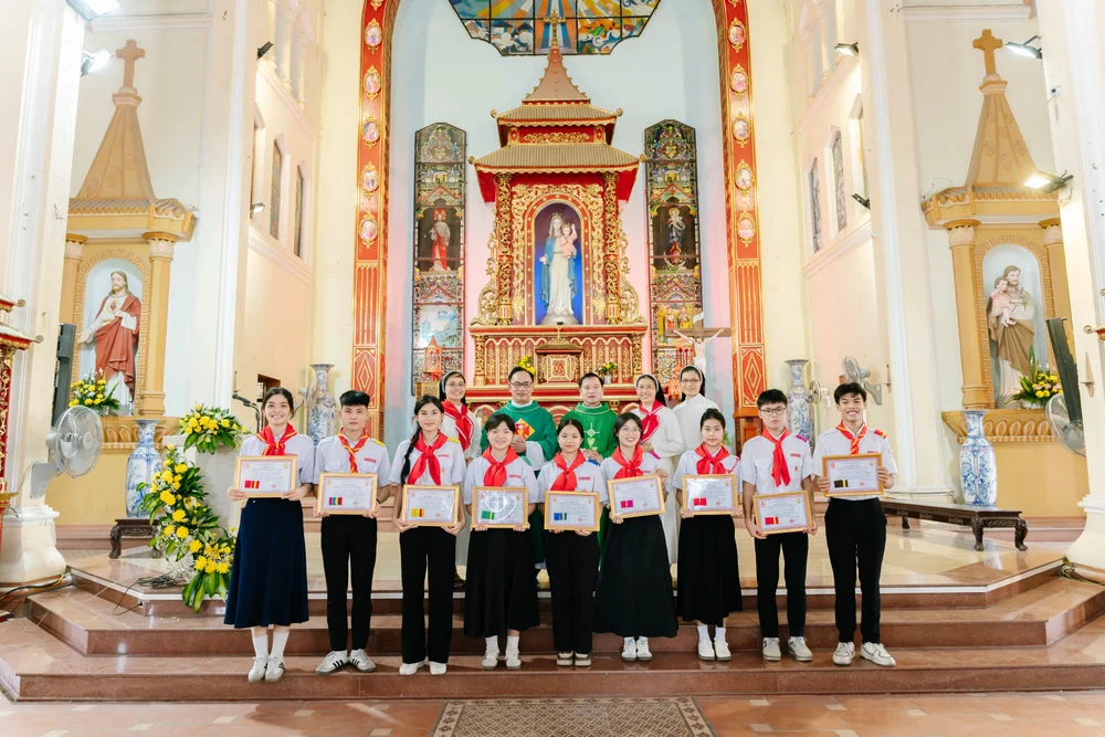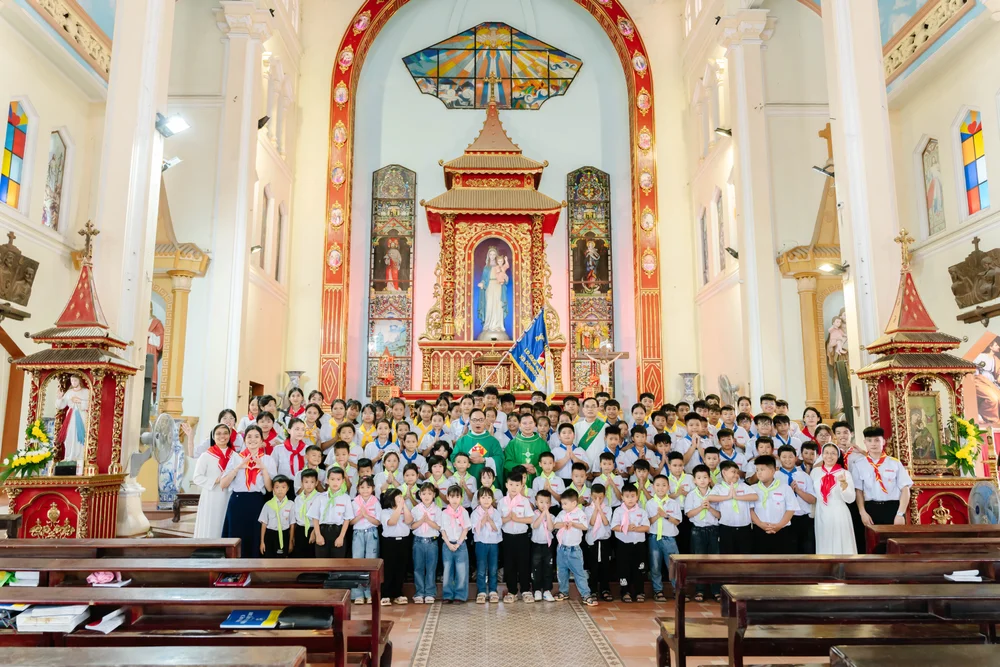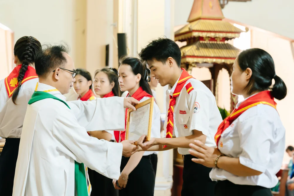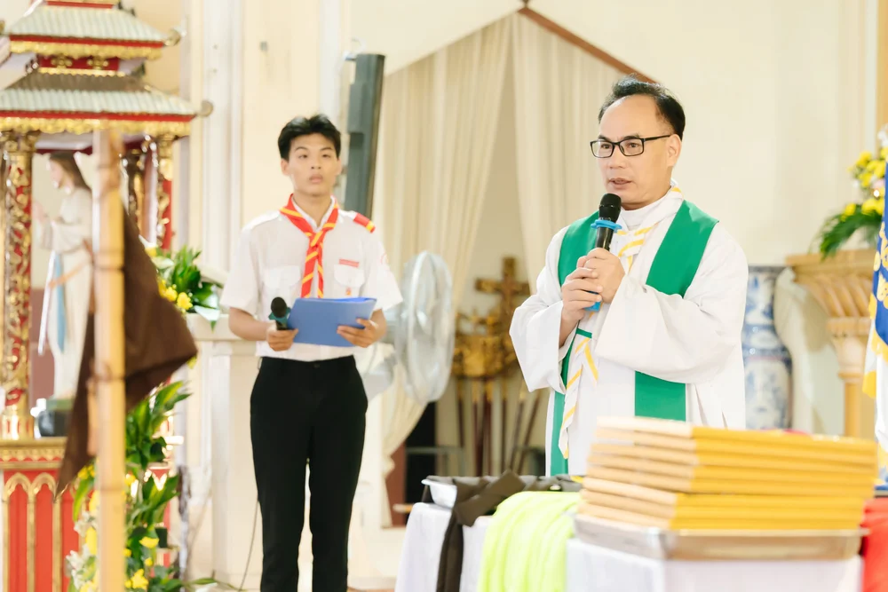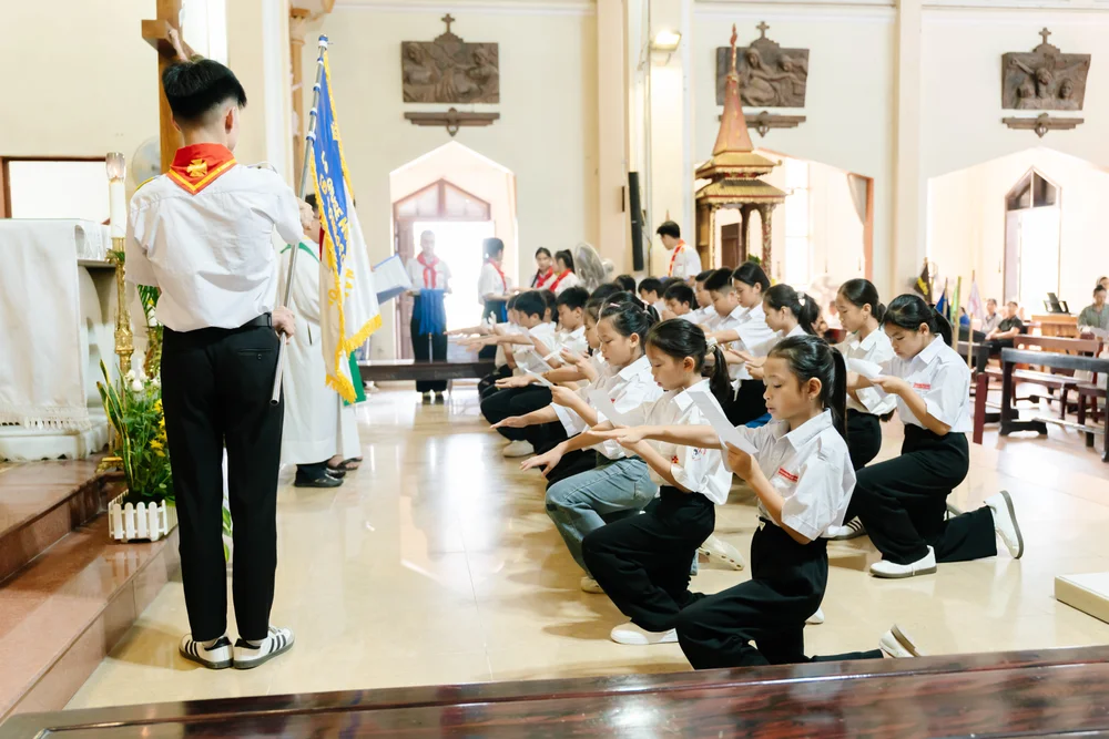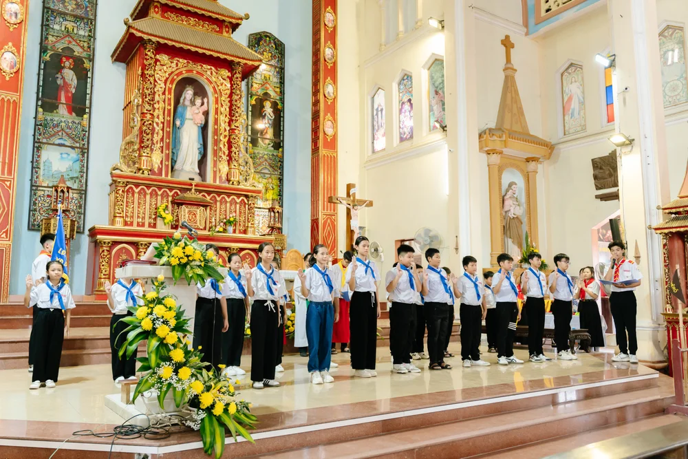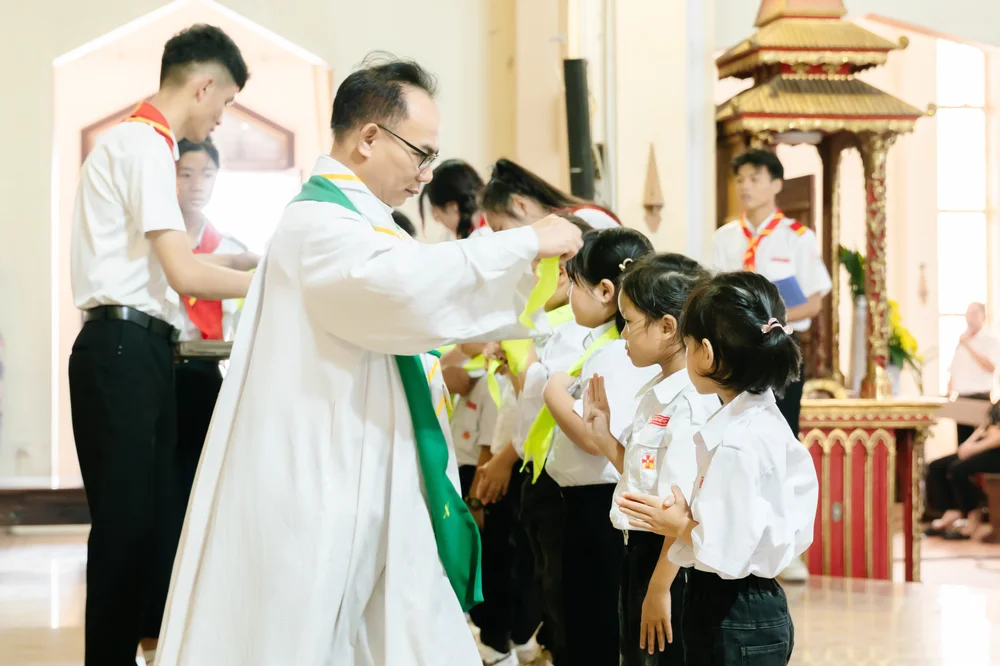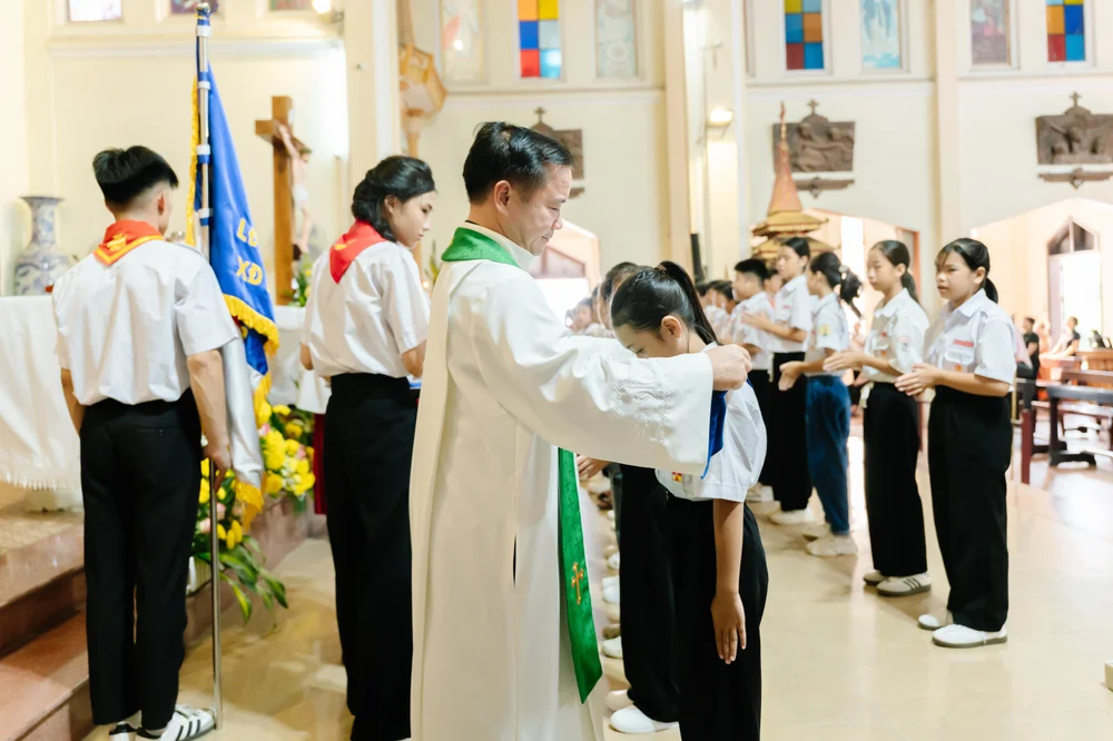 Khởi đầu năm học mới, các đoàn sinh đã long trọng cử hành Nghi thức tuyên hứa và lãnh nhận khăn quàng, dấu chỉ của sự trưởng thành trong Thiếu Nhi Thánh Thể, qua bốn phương châm sống: cầu nguyện – rước lễ – hy sinh – tông đồ.