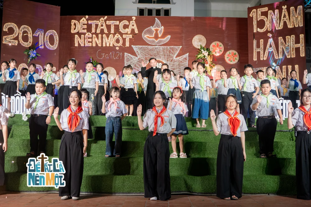 Đây là một dấu mốc đặc biệt, ghi nhận chặng đường phát triển và trưởng thành của đoàn trong hành trình đức tin. Mười lăm năm – một hành trình ân sủng, nơi đó biết bao kỷ niệm được ghi khắc, những giọt nước mắt xen lẫn nụ cười, và cũng là quãng đường in đậm bóng dáng của quý Cha Tuyên úy, quý Thầy – Dì Trợ úy, quý ân nhân, cùng bao thế hệ huynh trưởng và giáo lý viên đã miệt mài gieo hạt Tin Mừng nơi tuổi thơ.