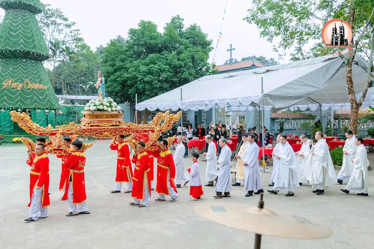 Ngay từ sớm, đông đảo giáo dân đã quy tụ về ngôi thánh đường thân thương, cùng hòa chung lời kinh, tiếng hát để ca tụng Mẹ Maria – người Mẹ hiền luôn đồng hành và che chở giáo xứ trong suốt hành trình đức tin. Thánh lễ được cử hành trong bầu khí linh thiêng, sốt sắng, giúp cộng đoàn thêm ý thức về vai trò của Mẹ trong chương trình cứu độ và trong đời sống Kitô hữu.