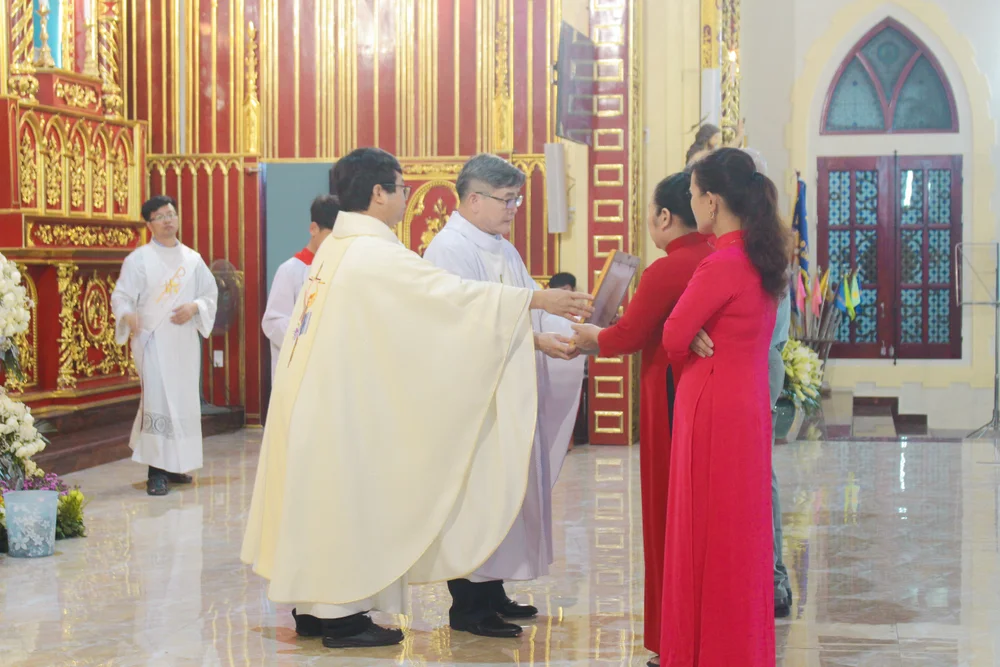 Cuối Thánh lễ, cha đặc trách long trọng trao bằng mãn nhiệm cho Ban hành giáo khóa cũ, như lời tri ân vì những hy sinh và đóng góp âm thầm nhưng quý giá trong suốt nhiệm kỳ vừa qua. Tiếp đến, cha đặc trách trao thư bổ nhiệm cho Ban hành giáo khóa mới và nhận lời tuyên thệ đã được Đức cha chuẩn thuận.