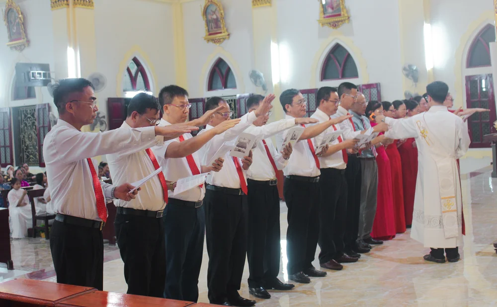 Đồng thời, Ngài cũng mời gọi quý vị ban hành giáo mới, nhờ ơn Chúa và sự cộng tác của bản thân, quý ông bà sẽ là những cánh tay nối dài với cha xứ và giáo dân trong các công việc chung.