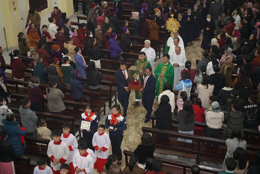 Tối Chúa nhật, ngày 25/01/2026, tại giáo xứ Yên Mỹ, Tuần Triển lãm trưng bày Thánh Thể đã được long trọng khai mạc trong bầu khí trang nghiêm và sốt sắng. Trước đó, cộng đoàn giáo xứ Yên Mỹ đã sốt sắng đón nhận Thánh Thể và Thánh tích từ giáo xứ Lập Trí, trong tinh thần hiệp thông và tâm tình tạ ơn.