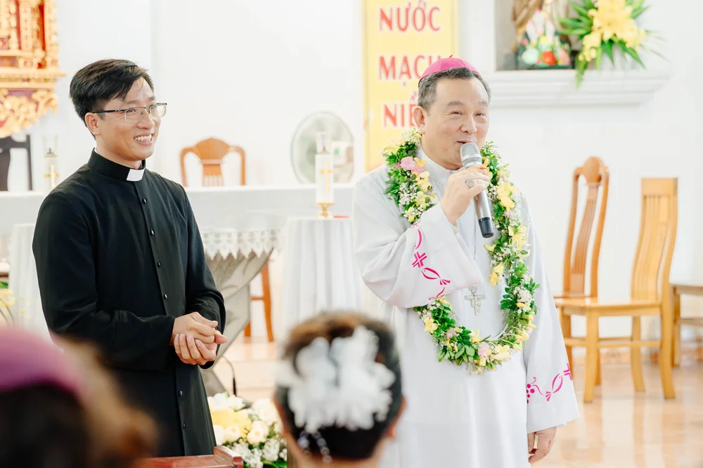 Trước khi kết thúc Thánh Lễ, một vị đại diện đã có đôi lời tâm tình gửi đến Đức Cha, quý cha đồng tế đã hiện diện, hiệp dâng Thánh Lễ cầu nguyện cho Giáo xứ, ngoài ra, còn có quý tu sĩ nam nữ, quý ân nhân, những người con xa quê đã về chung vui với Giáo xứ trong Thánh Lễ tạ ơn ngày hôm nay.