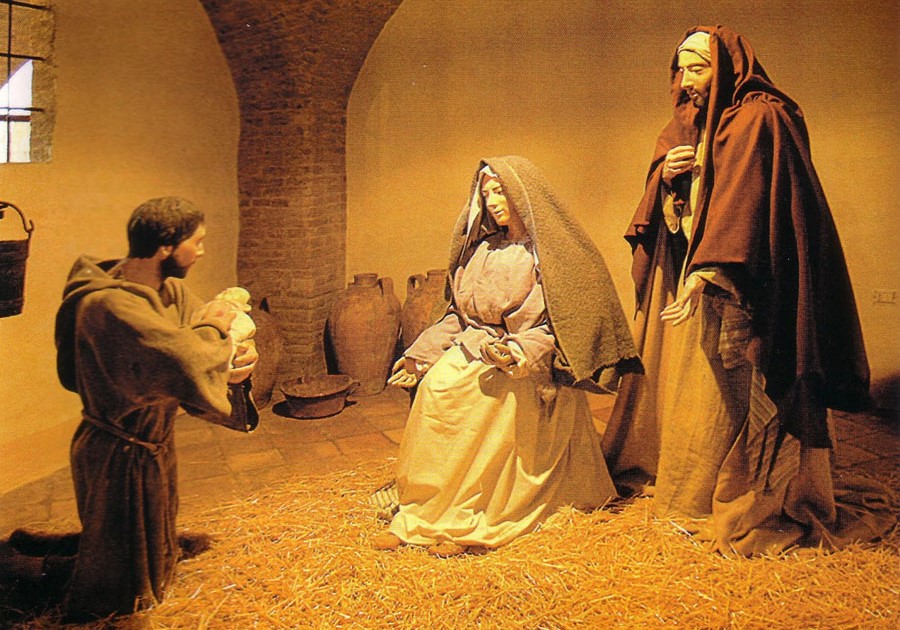 Khởi đi từ Thánh Phanxicô, đã nảy sinh một cách lắng nghe mới mẻ tiếng nói của Giáng Sinh, tiếng vọng sâu sắc của điều gì đó đã bắt đầu thay đổi thế giới 2025 năm trước. Tu sĩ Tommaso xứ Celano đã viết rằng Thánh Phanxicô đã biến Greccio thành một Bêlem mới, và Thánh Bonaventura đã viết rằng ba năm trước khi qua đời, vị Thánh nghèo thành Assisi muốn kỷ niệm Lễ Giáng Sinh của Chúa Giêsu Hài Đồng, đã xin phép và được sự cho phép của Đức Giáo Hoàng. Vì vậy, ngài không chỉ mang đến cỏ khô cho máng cỏ, mà còn cả một con bò và một con lừa, trong một khung cảnh đẹp đến nỗi chính đôi mắt của Thánh Phanxicô cũng đẫm lệ và trái tim tràn ngập niềm vui. Greccio đã trở thành một Bêlem mới.