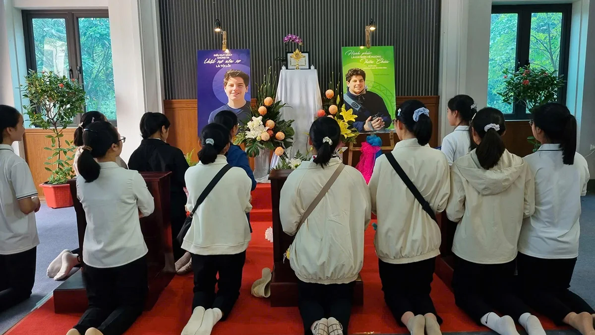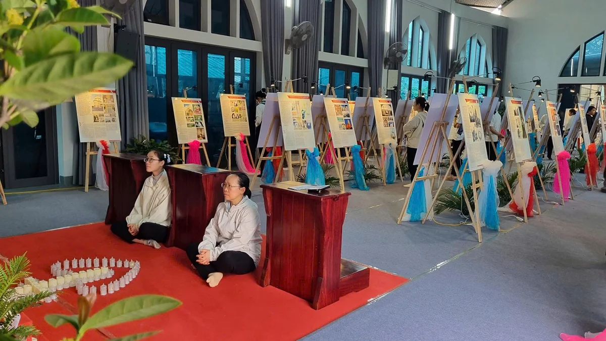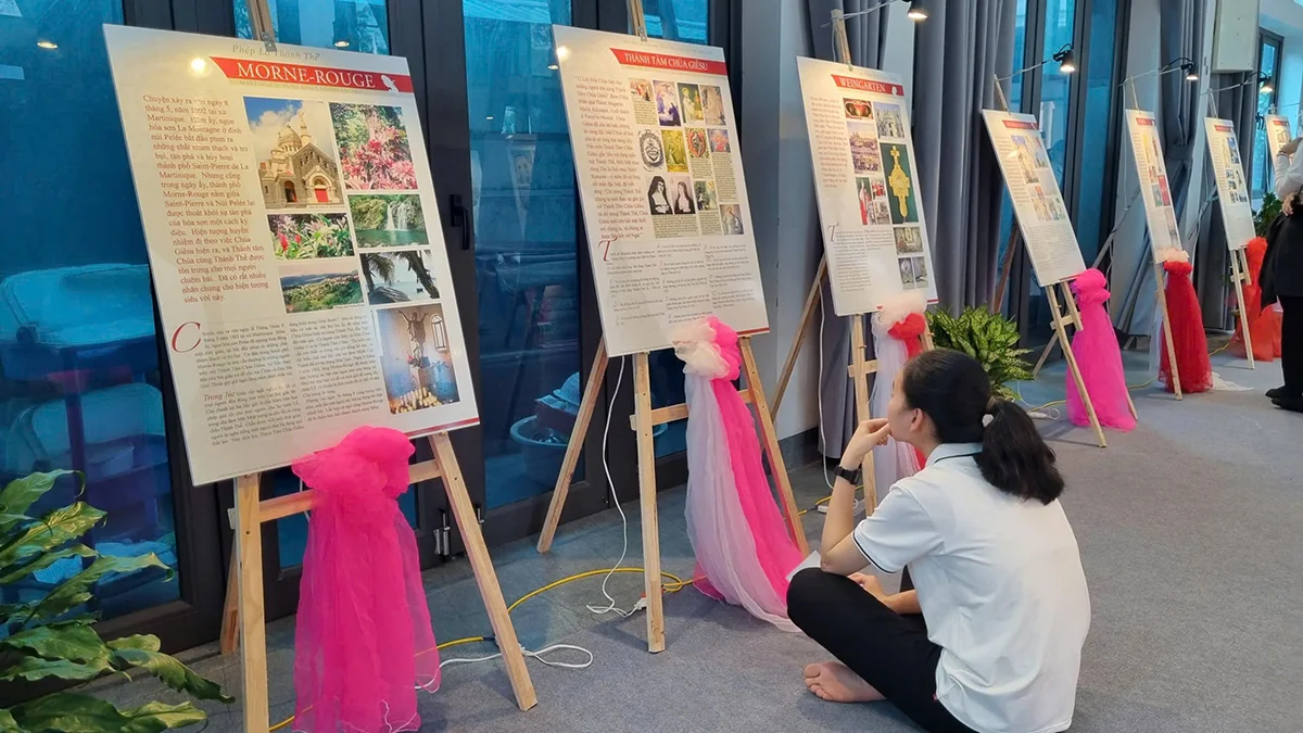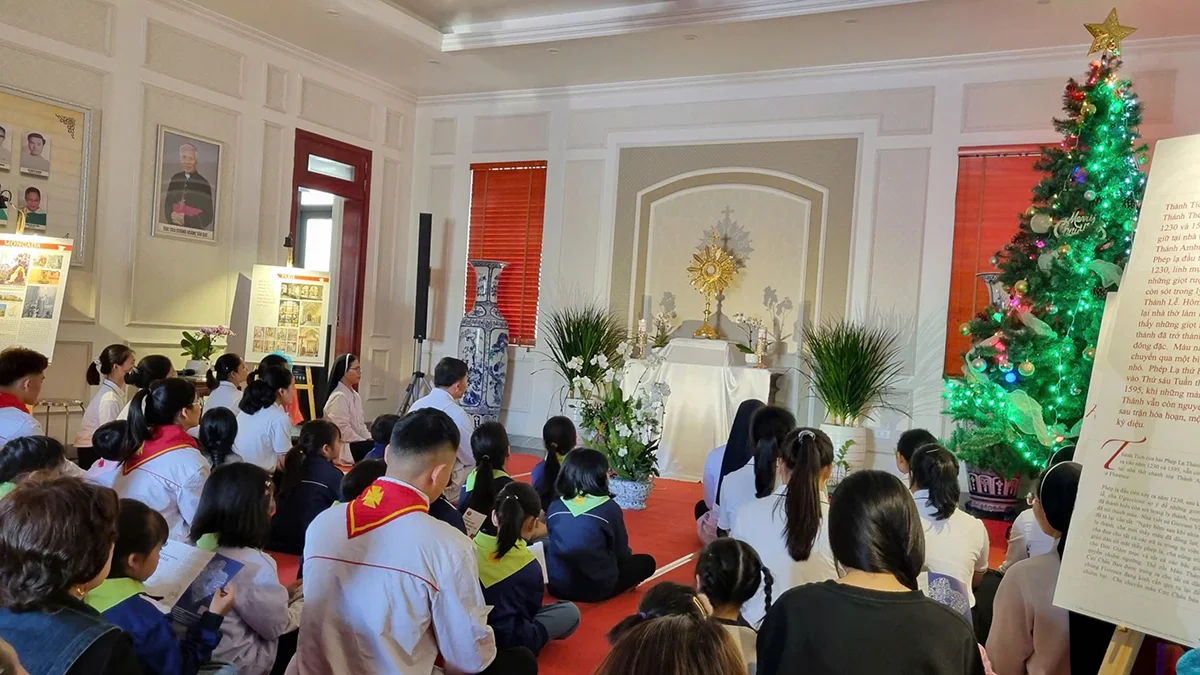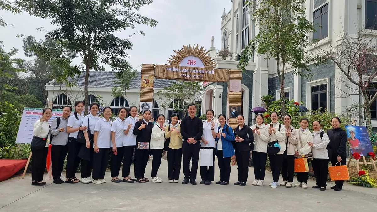Khi tham quan triển lãm về các phép lạ Thánh Thể do thánh Carlo Acutis sưu tầm, cha mời gọi mọi người không chỉ “xem”, mà dừng lại – đọc – cầu nguyện – chầu Thánh Thể ngay tại không gian triển lãm. Để rồi, từ Thánh Thể, mỗi người được biến đổi và sẵn sàng “bẻ mình ra” cho người khác.