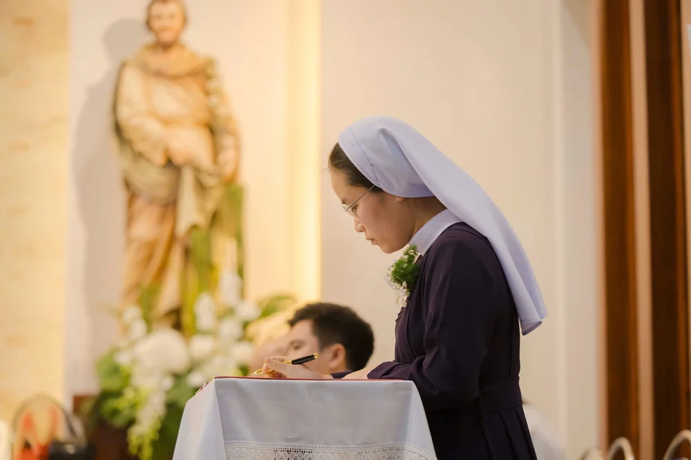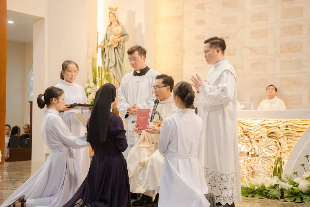 Từ giây phút ấy, các chị chính thức thuộc trọn về Thiên Chúa, bước vào mối tình giao ước linh thiêng, trở nên của lễ sống động dâng hiến cho Ngài và cho Giáo Hội.